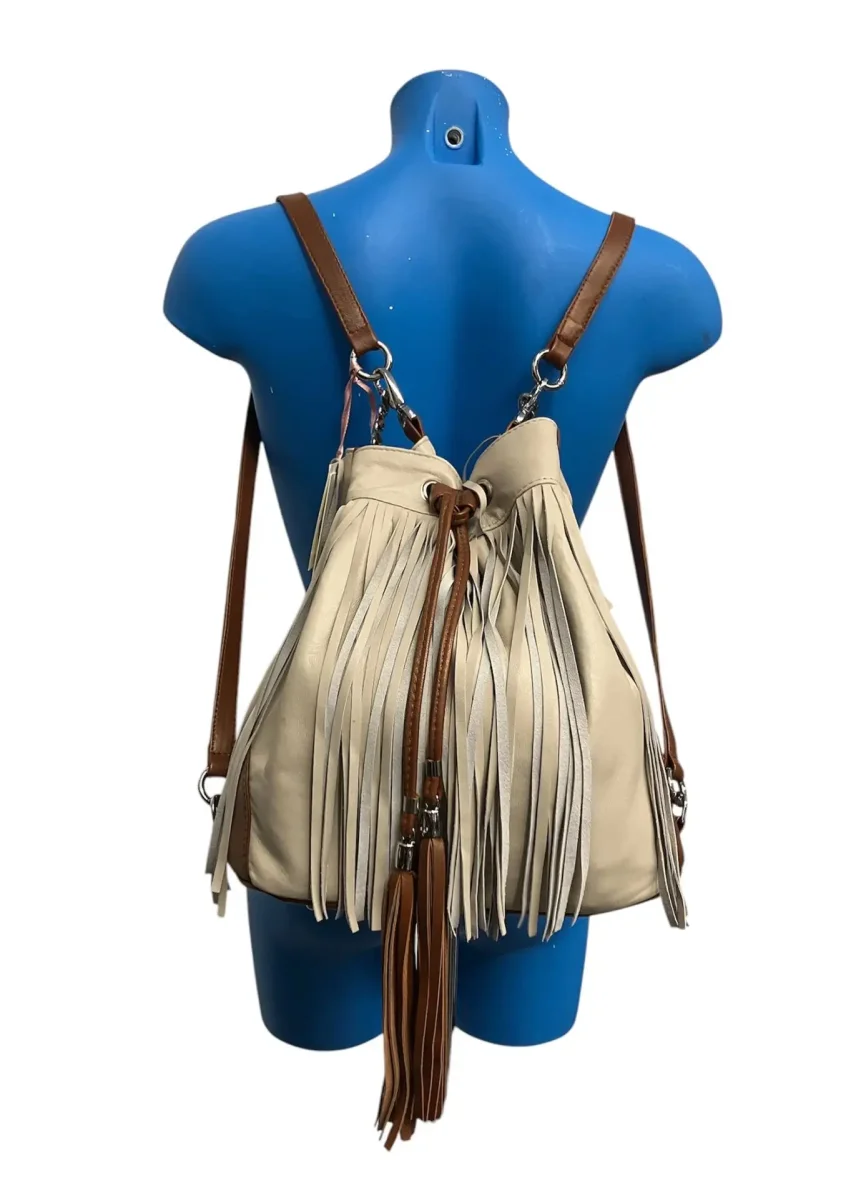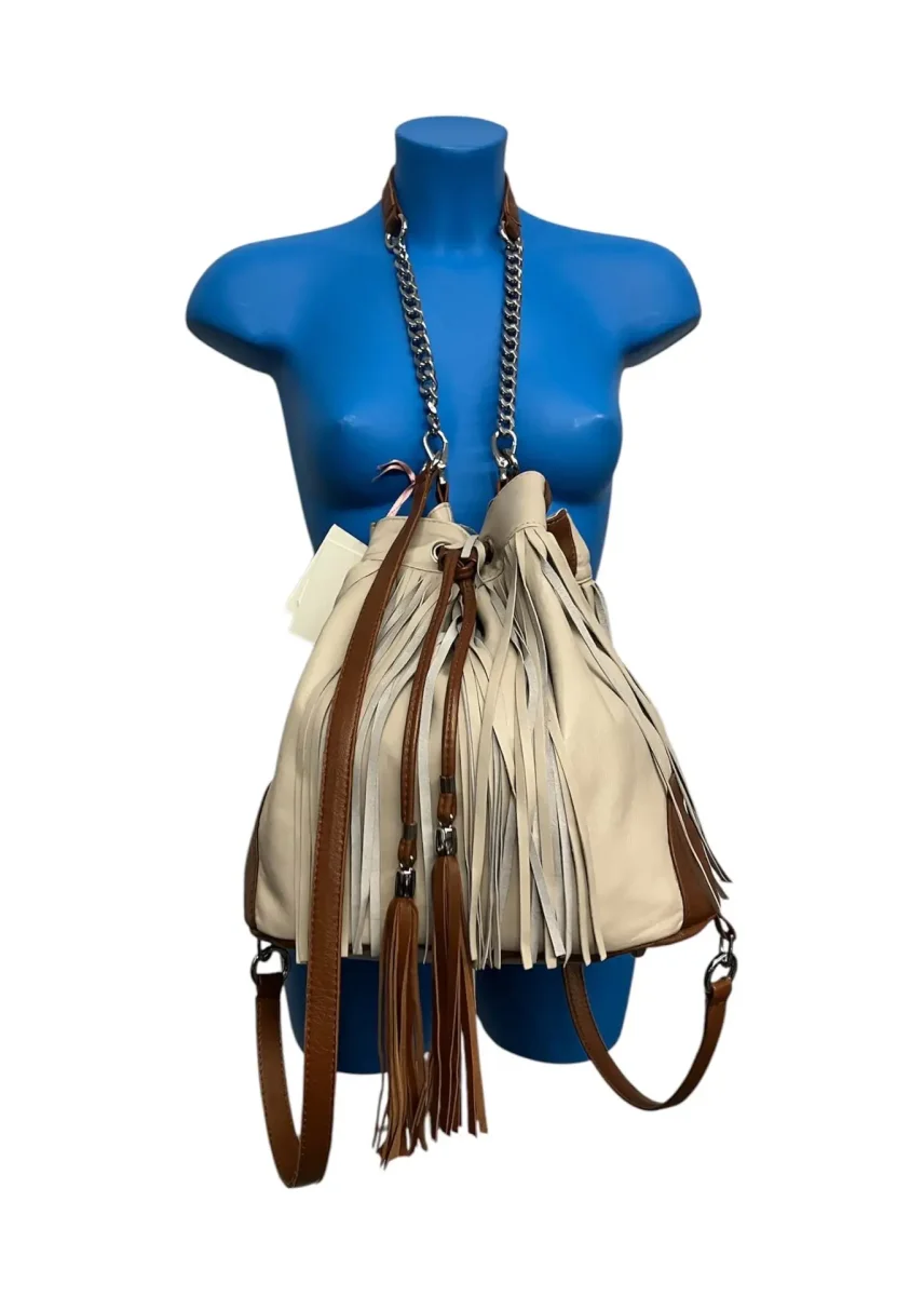 Skin Cover – Borsa zaino a secchiello in pelle beige e marrone