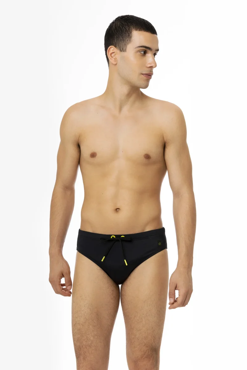 Slip mare in lycra con fodera. coulisse nera con occhielli e fine corda lime a contrasto. patch logo termoapplicato davanti.