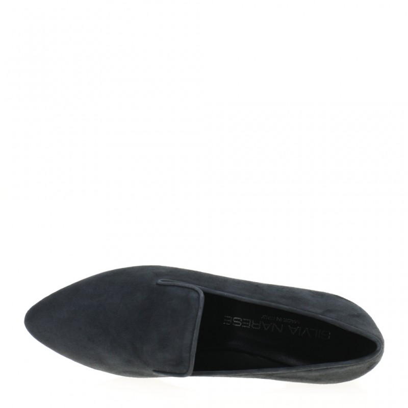 Scarpa inย camoscio. Altezza tacco 2ย cm. Fodera in pelle. Suola in cuoio e gomma. Made in Italy.