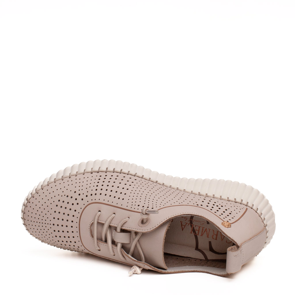 Scarpa in pelle allacciata. Sneakers in pelle traforata con suola in gomma . Suola con zeppa in gomma alta 4 cm. Soletta in pelle.