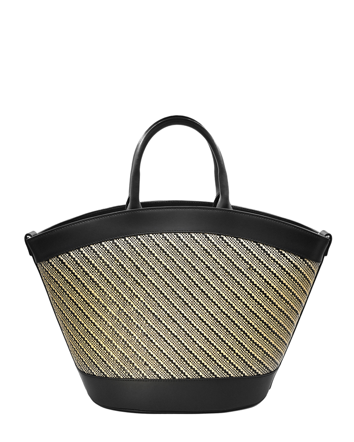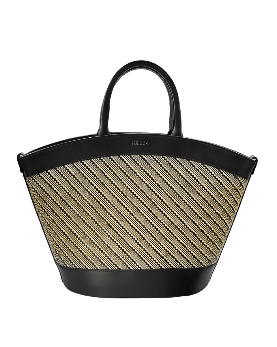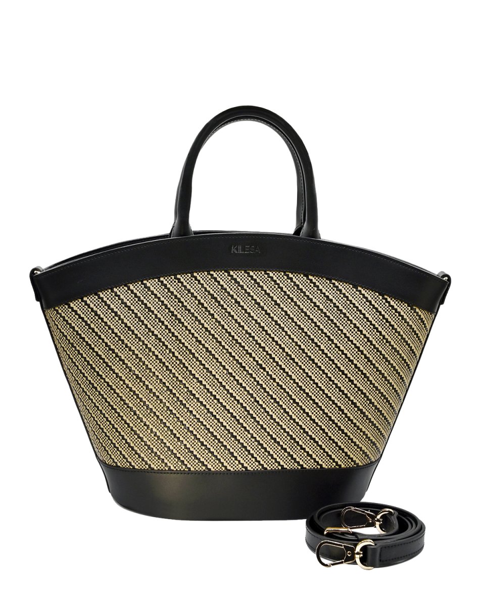 La borsa shopper KILESA in raffia naturale e vera pelle di vitello nera o biancaย unisce leggerezza, eleganza e artigianalitร tutta italiana. Un accessorio pensato per la donna moderna che desidera coniugare stile e funzionalitร , ideale per la stagione estiva ma perfetto tutto lโanno grazie al suo design senza tempo.