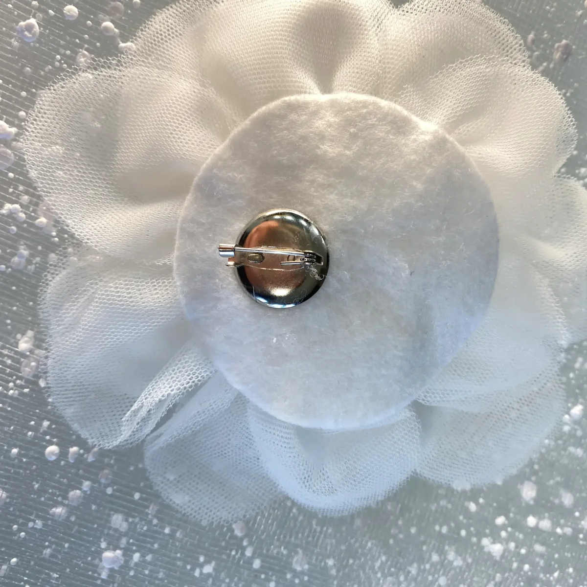Spilla Gioiello con Fiore in Tulle, Eleganza per Abiti da Cerimonia