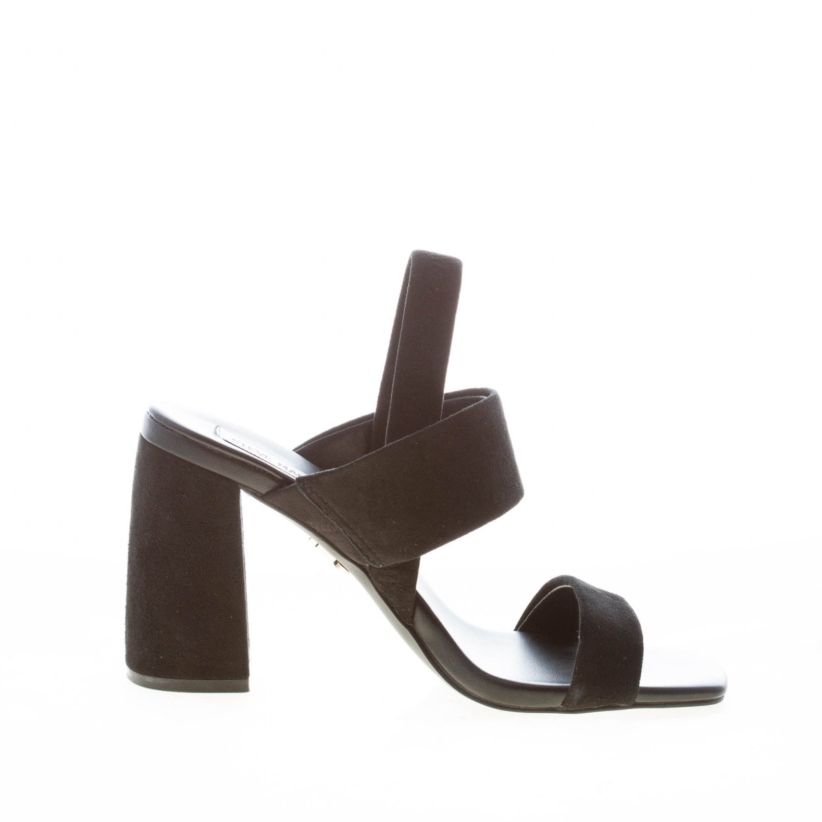 STEVE MADDEN donna sandalo Maizie in camoscio NERO. Tacco 8,5 cm