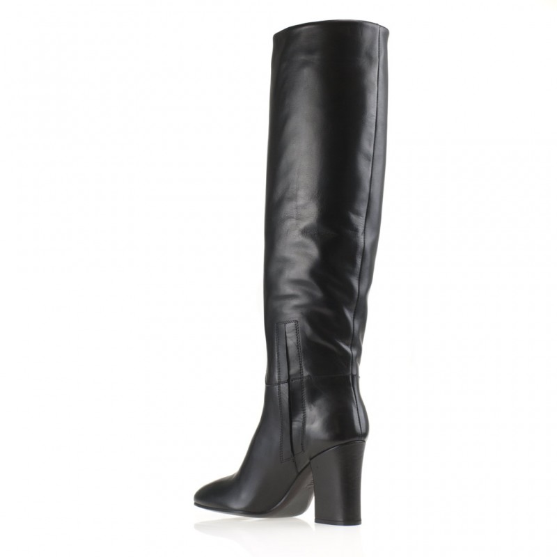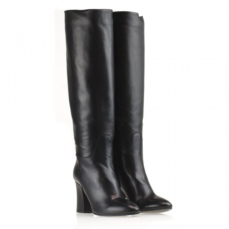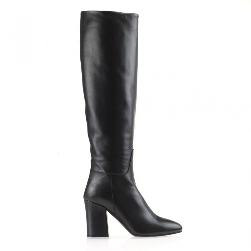 Stivale sotto il ginocchio in pelle. Inserto in elastico nella parte interna per facilitare l’inserimento. Fodera in pelle. Suola in cuoio e gomma. Altezza tacco 8 cm. Gambale 43 cm. Made in Italy.