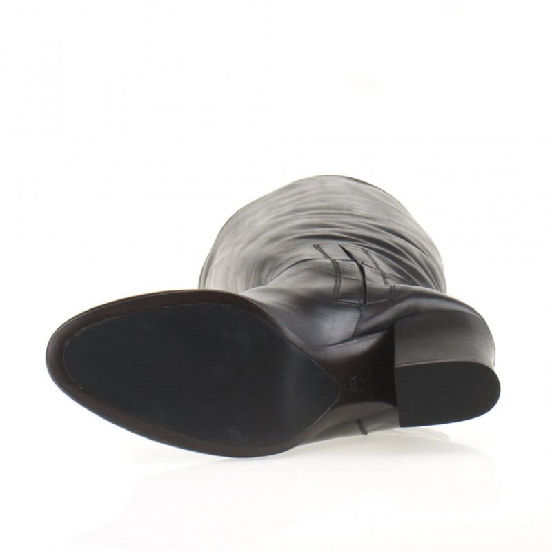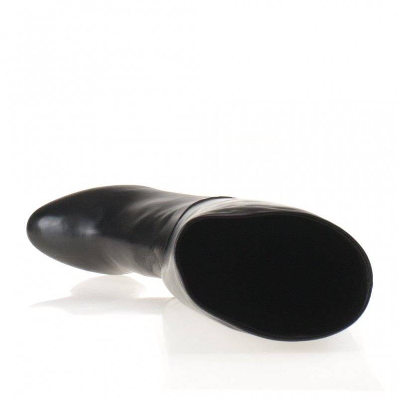 Stivale sotto il ginocchio in pelle. Inserto in elastico nella parte interna per facilitare l’inserimento.