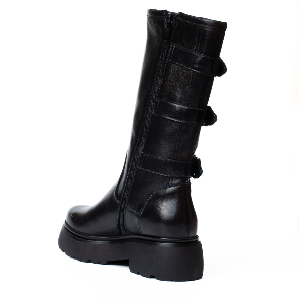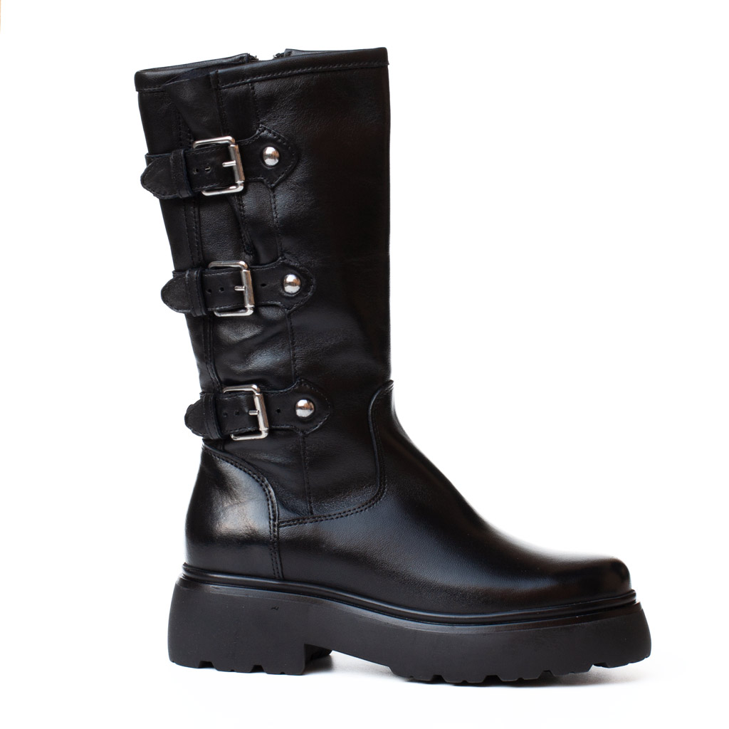 Lo stivale biker fibbie nero di MJUS รจ l’accessorio audace che non puรฒ mancare nel tuo guardaroba. Realizzato in vera pelle, presenta tre fibbie regolabili decorative e una robusta suola platform. Perfetto per chi ama un look grintoso e un comfort duraturo. Chiusura con cerniera laterale per una calzata facile.ย Altezza tacco 5 cm, gambale alto 28 cm. Fodera in pelle e tessuto. Suola in gomma.