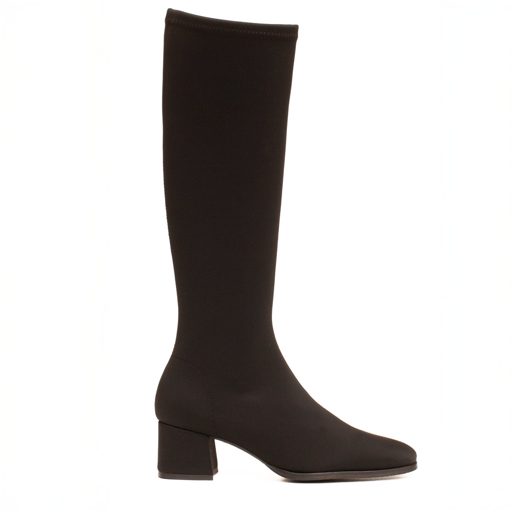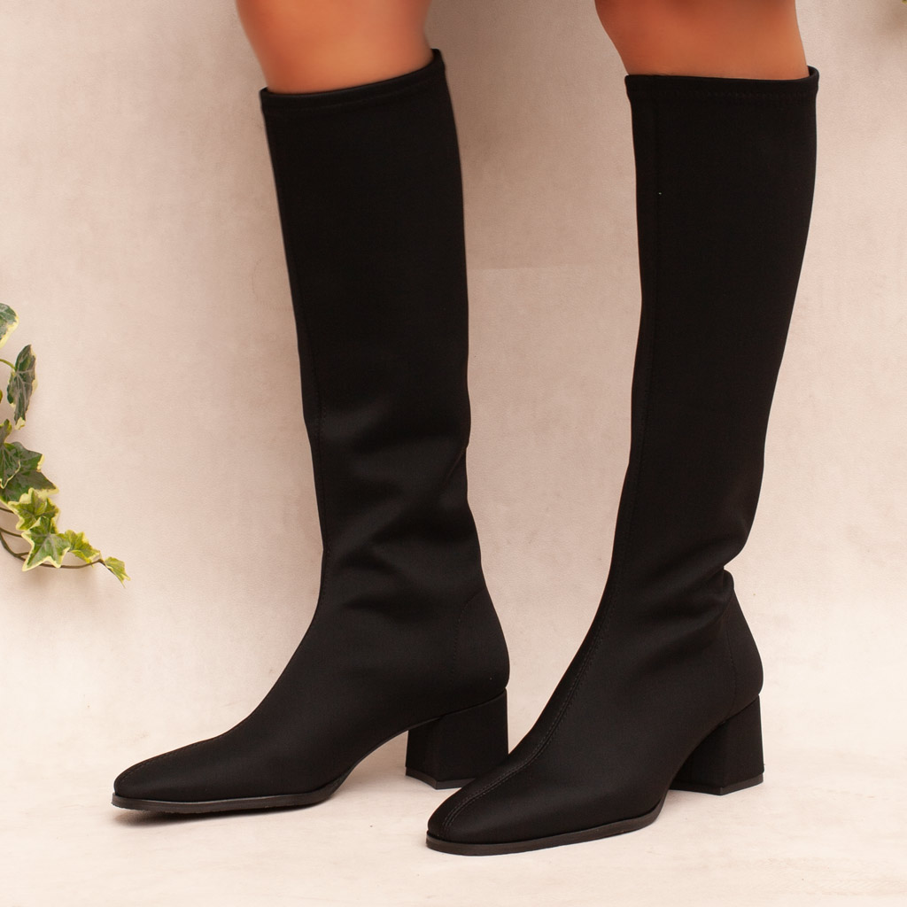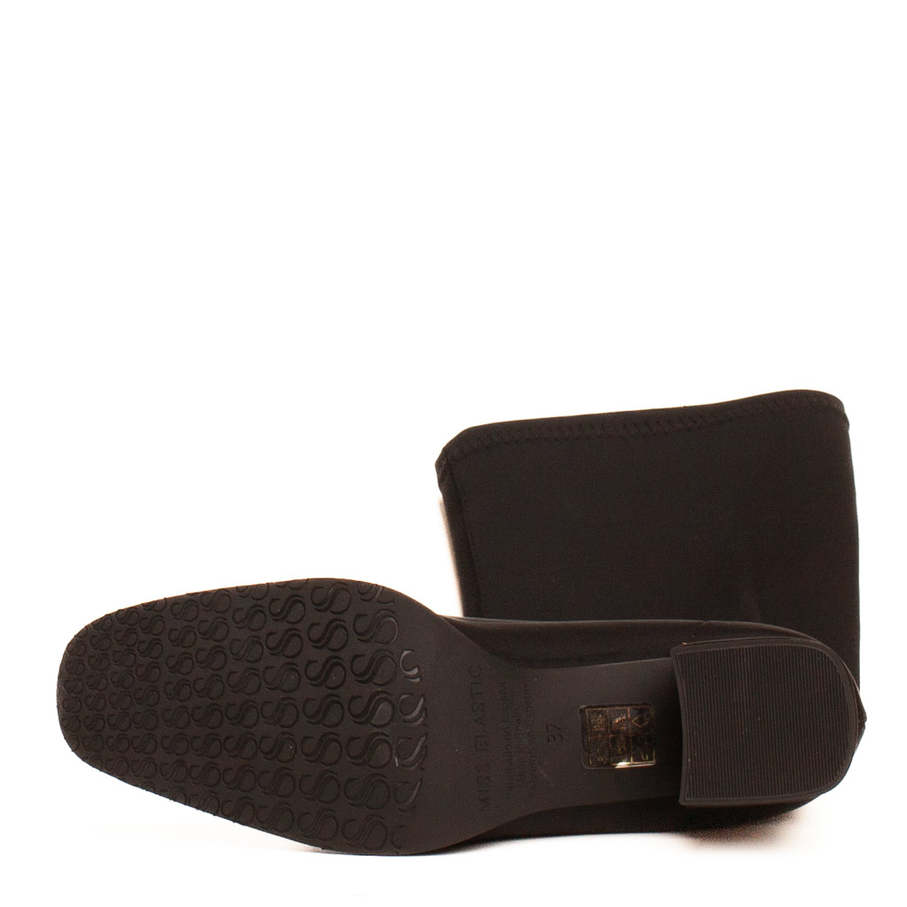 Eleva il tuo stile senza sacrificare il comfort e la protezione! Questi stivali neri a mezza gamba di Miss Elastic combinano un design moderno con la praticitร del tessuto elasticizzato e impermeabile. Il tacco largo e basso offre stabilitร per tutto il giorno, mentre la punta quadrata aggiunge un tocco di tendenza. Perfetti per affrontare pioggia e maltempo con eleganza. Fodera in lycra. Made in Spain.