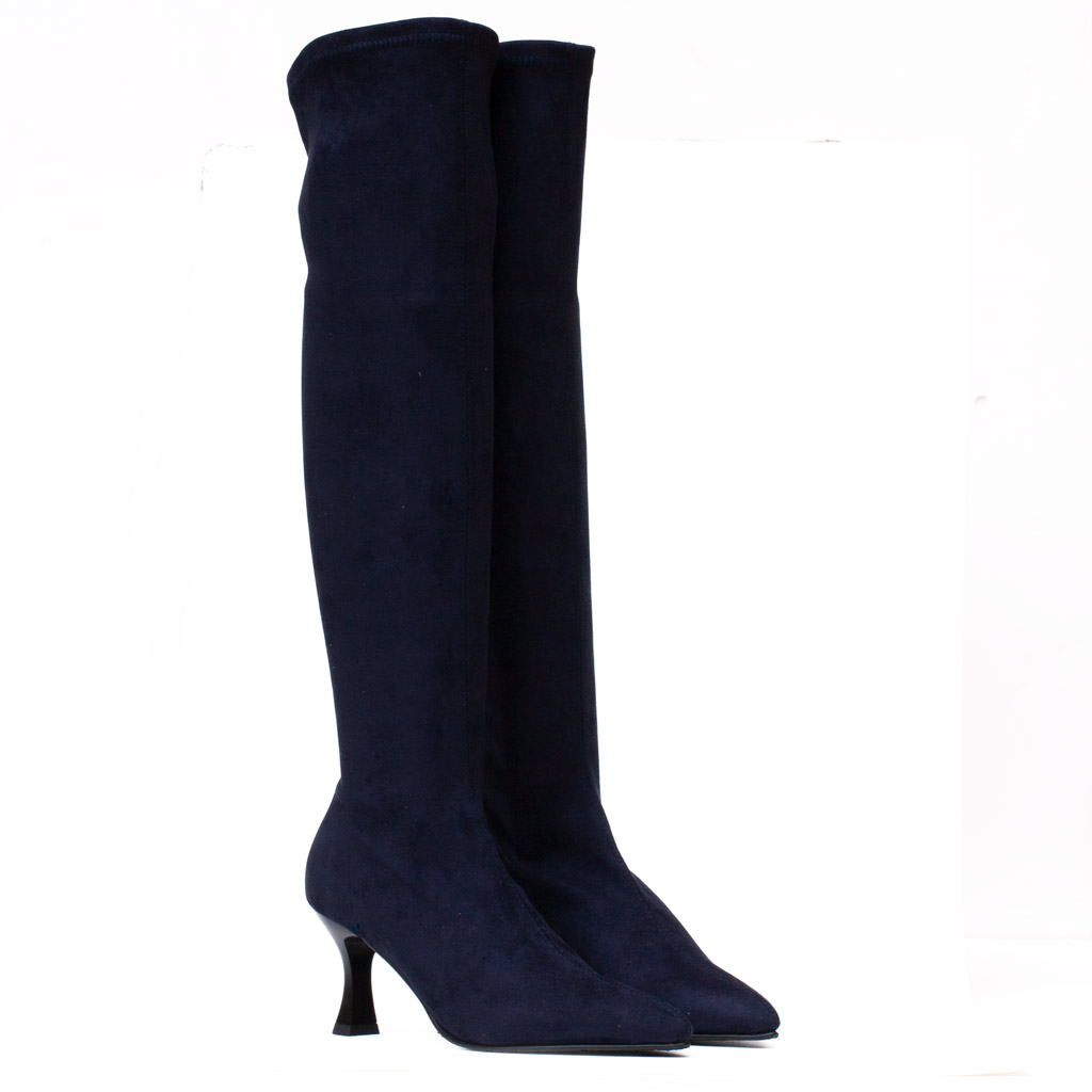 Stivale Sopra Ginocchio Camoscio Elasticizzato Blu Miss Elastic