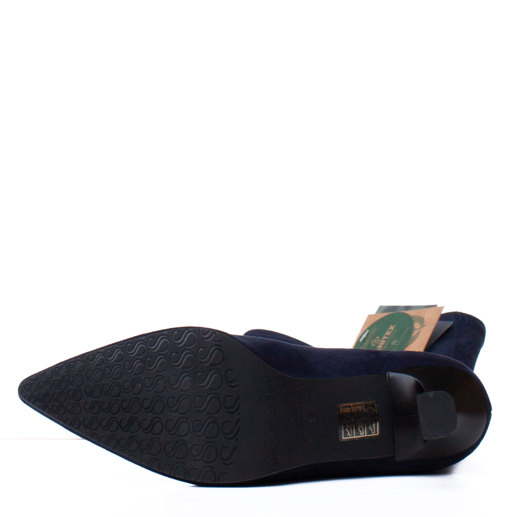 Lo stivale sopra il ginocchio in camoscio elasticizzato blu Miss Elastic รจ l’accessorio di tendenza che non puรฒ mancare nel tuo guardaroba. Questo modello combina la morbidezza del camoscio con una vestibilitร avvolgente e super confortevole. Il tacco a rocchetto Alto 7 cm slancia la figura garantendo stabilitร . Perfetto per outfit eleganti o casual-chic, offre un look sofisticato e moderno. Fodera in lycra. Made in Spain.