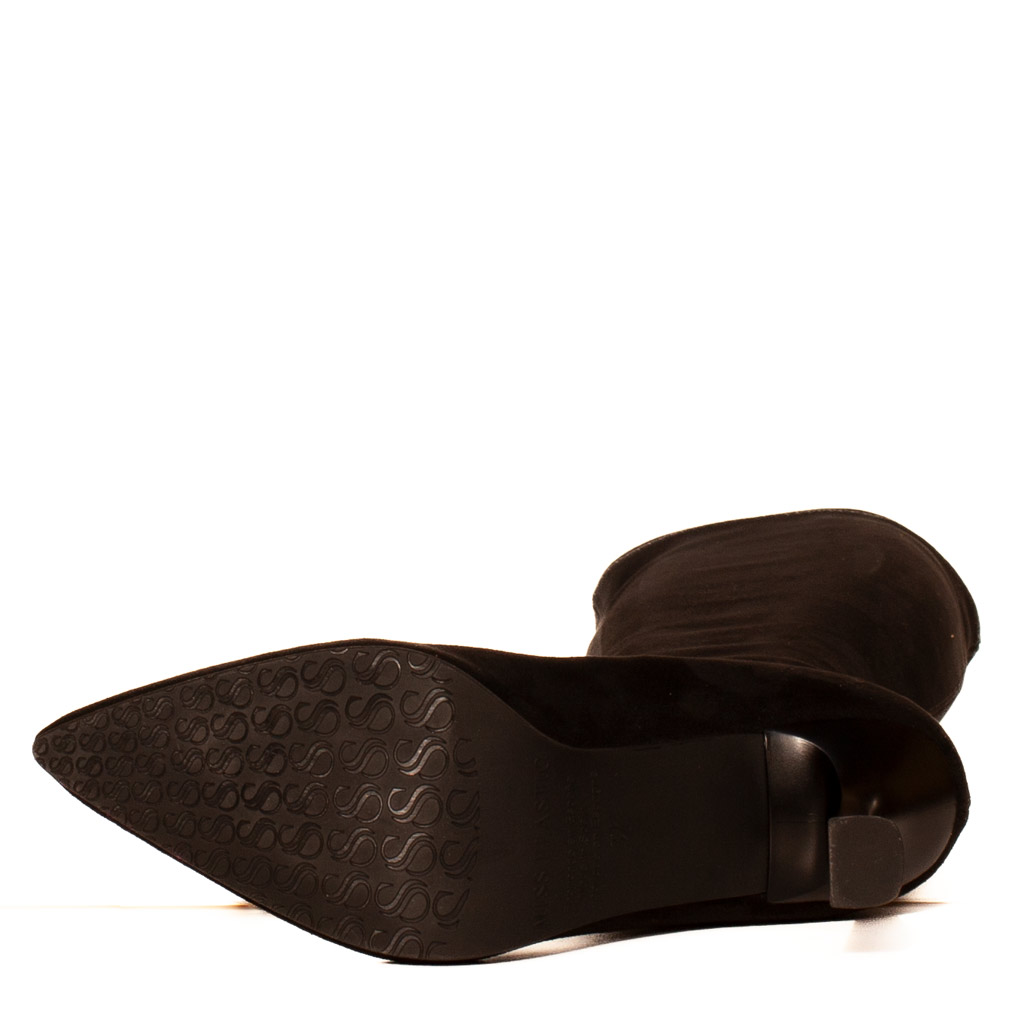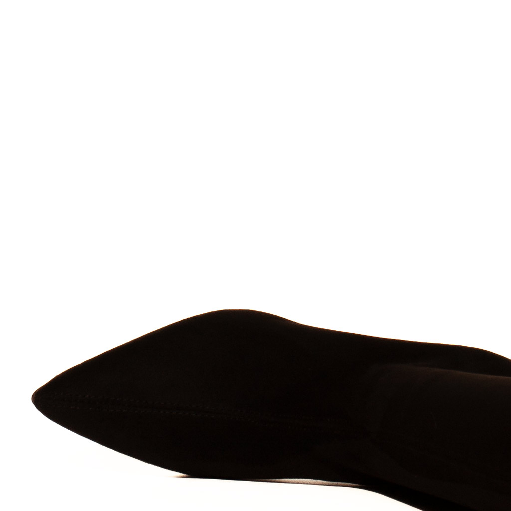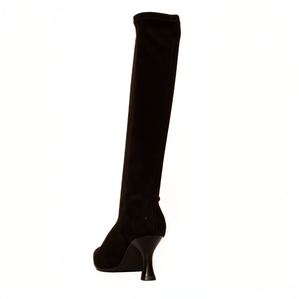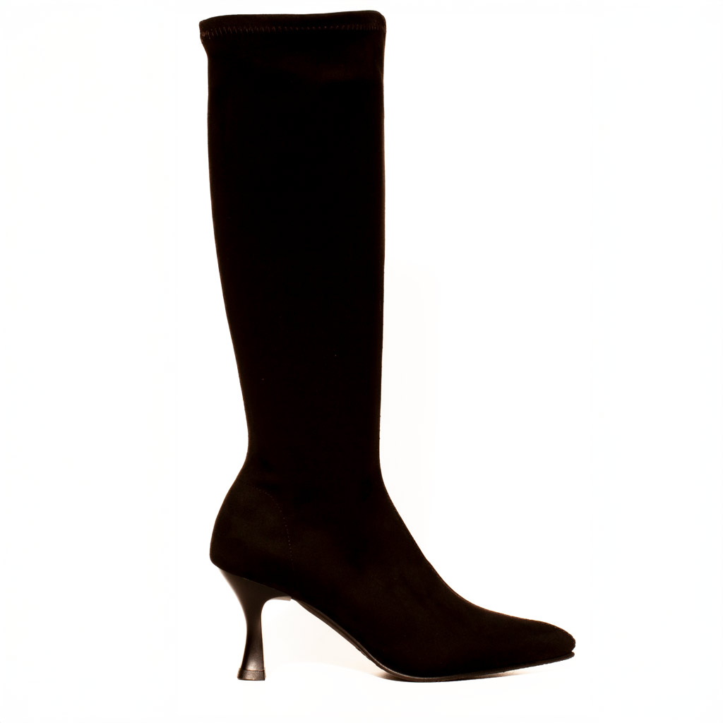 Lo stivale elasticizzato in tessuto nero รจ l’accessorio perfetto per un look sofisticato e moderno. Con un tacco alto a stiletto che slancia la figura e una vestibilitร aderente e confortevole, questo modello con punta affusolata unisce eleganza e praticitร . Ideale per le serate speciali o per dare un tocco chic all’abbigliamento quotidiano. Altezza tacco 7 cm, gambale 38 cm.