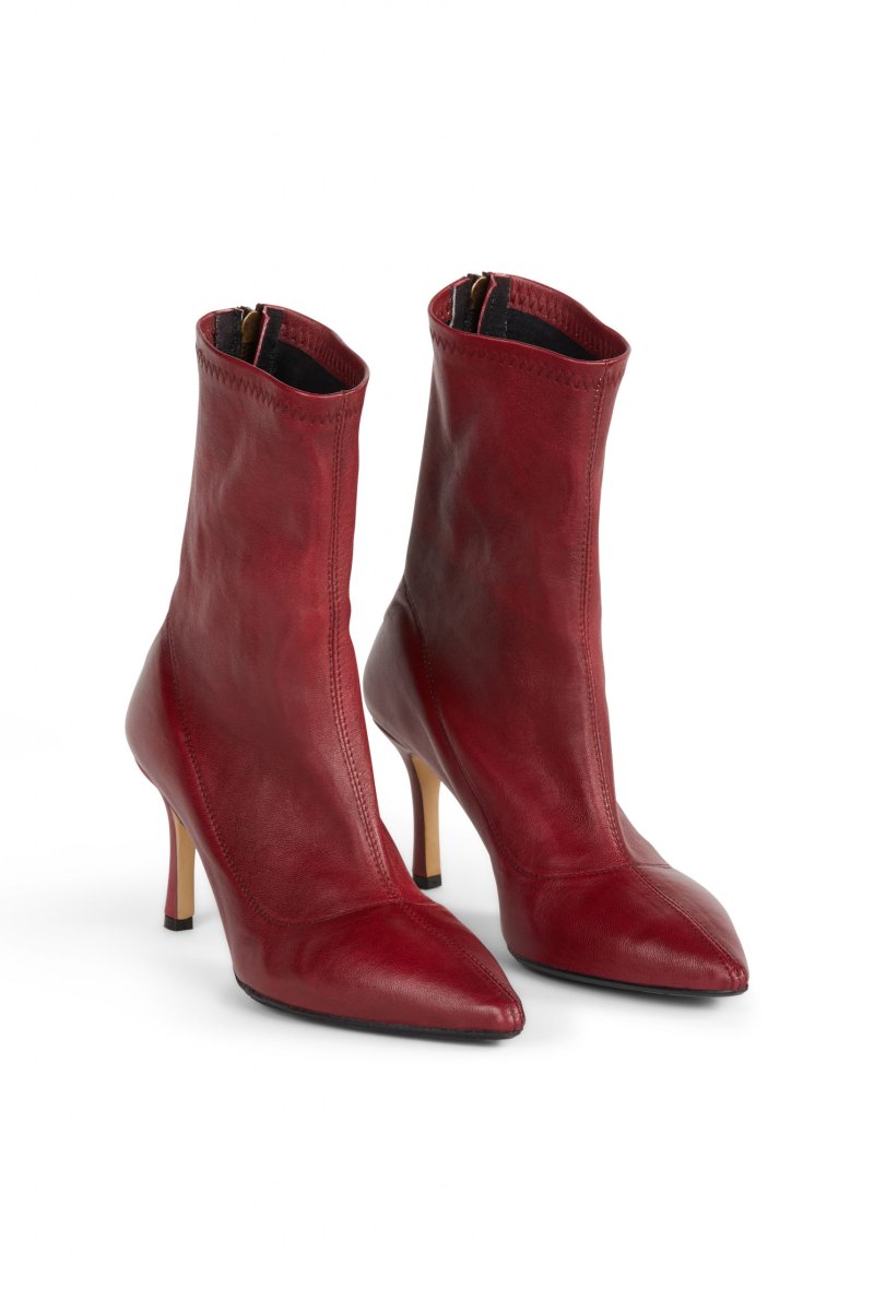 Stivaletti a punta in pelle elasticizzata rosso scuro
