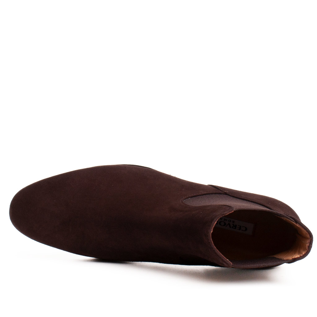 Eleva il tuo stile quotidiano con questi splendidi stivaletti in camoscio marrone di Cervone. Un design Chelsea boot versatile, caratterizzato da un tacco basso e confortevole. Il materiale in morbida pelle scamosciata offre un look raffinato. Ideali per la stagione autunnale e invernale, questi stivaletti sono un must-have nel tuo guardaroba. Facili da indossare grazie agli inserti elastici laterali.