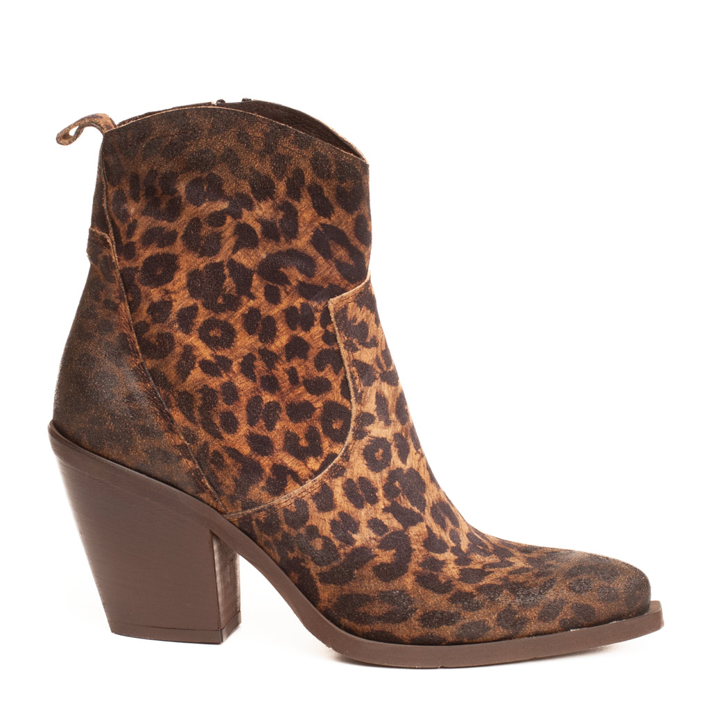 Stivaletto Texano Camoscio Maculato Leopardato Tacco Alto