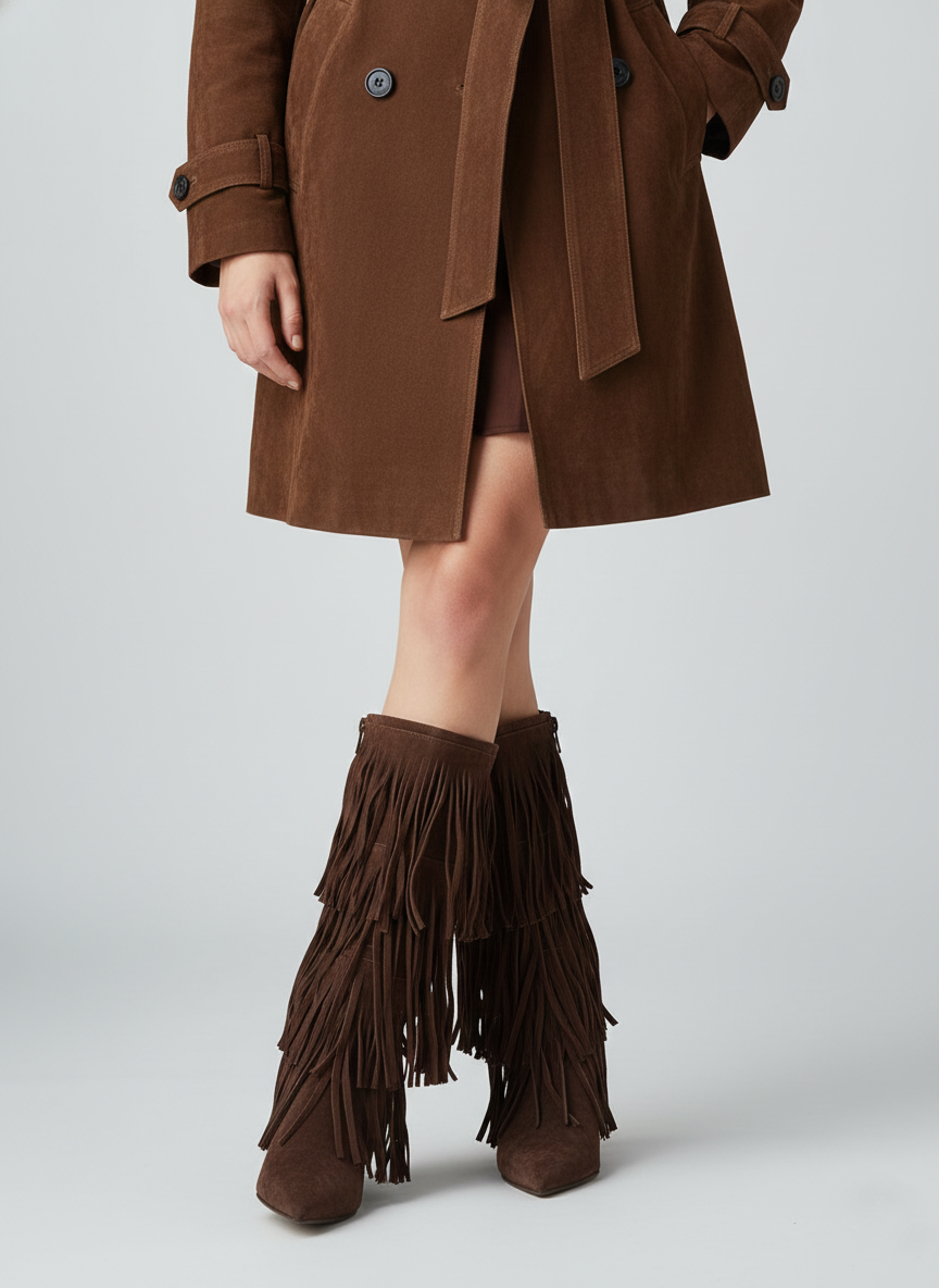 Entra nel Mood con i Nostri Stivali Scamosciati Marroni Frange