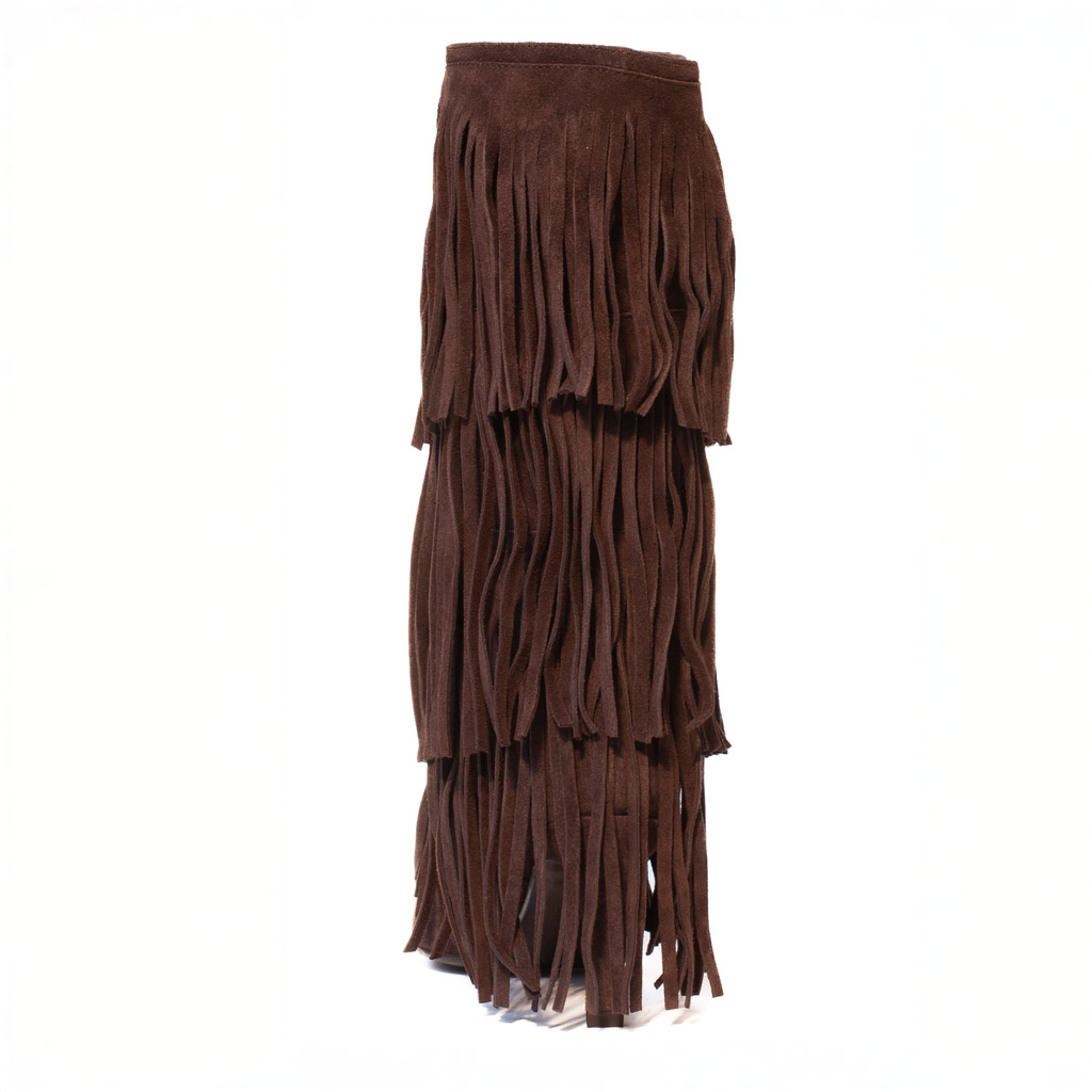 Questi stivali scamosciati marroni frange rappresentano il connubio perfetto tra lo spirito selvaggio del boho e l’eleganza sofisticata. Il loro design a stivale alto รจ interamente rivestito da una cascata di frange in camoscio ton-sur-ton. Ogni passo che farai sprigionerร un movimento dinamico e accattivante, che non passerร inosservato. Ideali per chi ama distinguersi con classe, questi stivali sono una vera dichiarazione di stile. La colorazione marrone scuro, ricca e versatile, si abbina splendidamente a una vasta gamma di colori e tessuti.