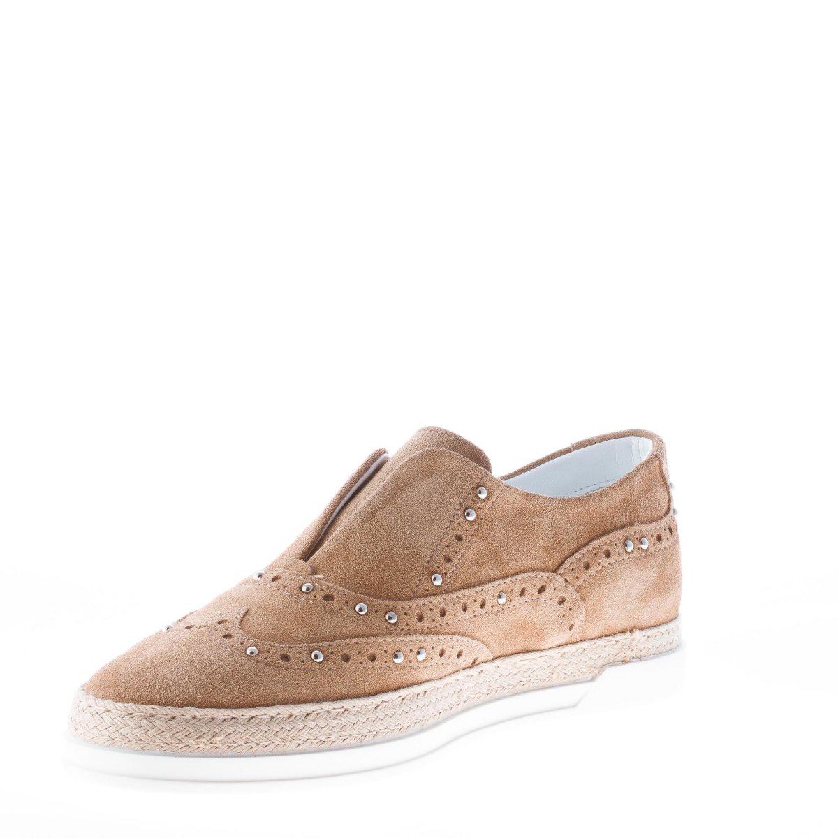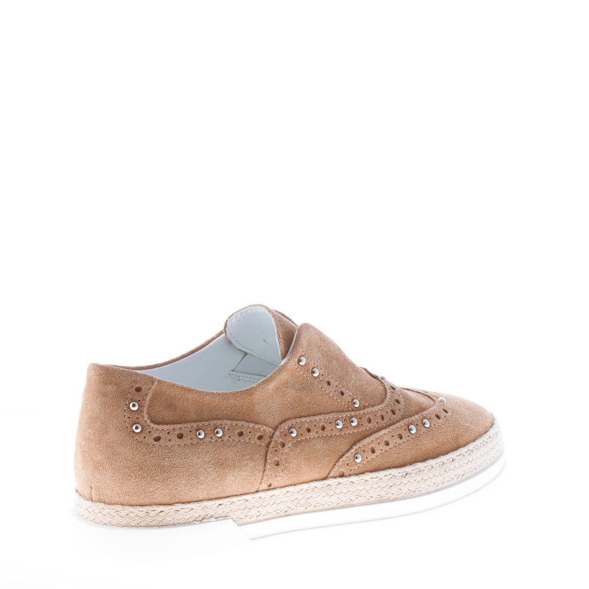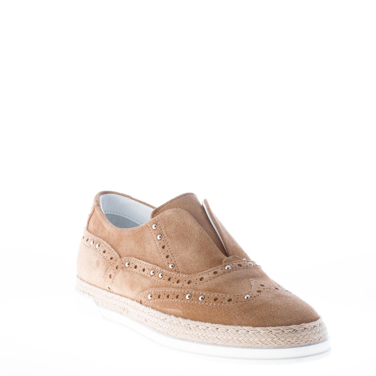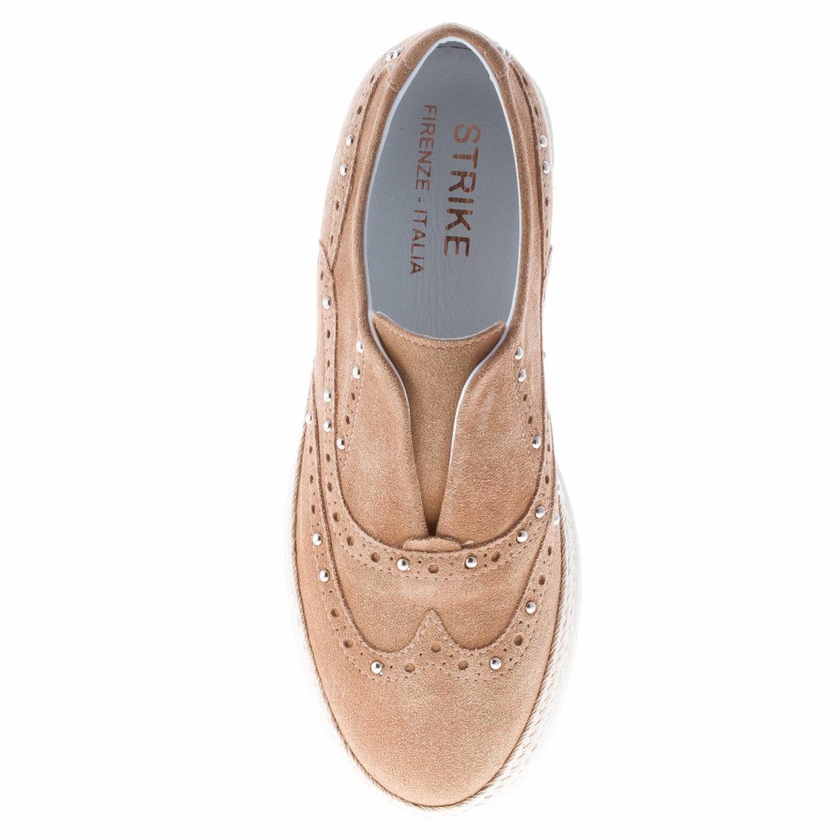 STRIKE FIRENZE donna slip on francesina in camoscio BEIGE con borchie e corda