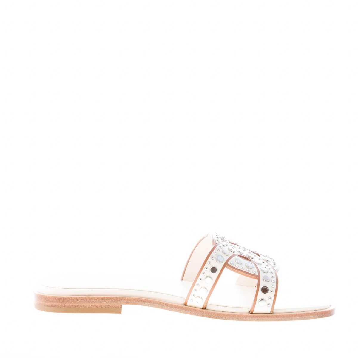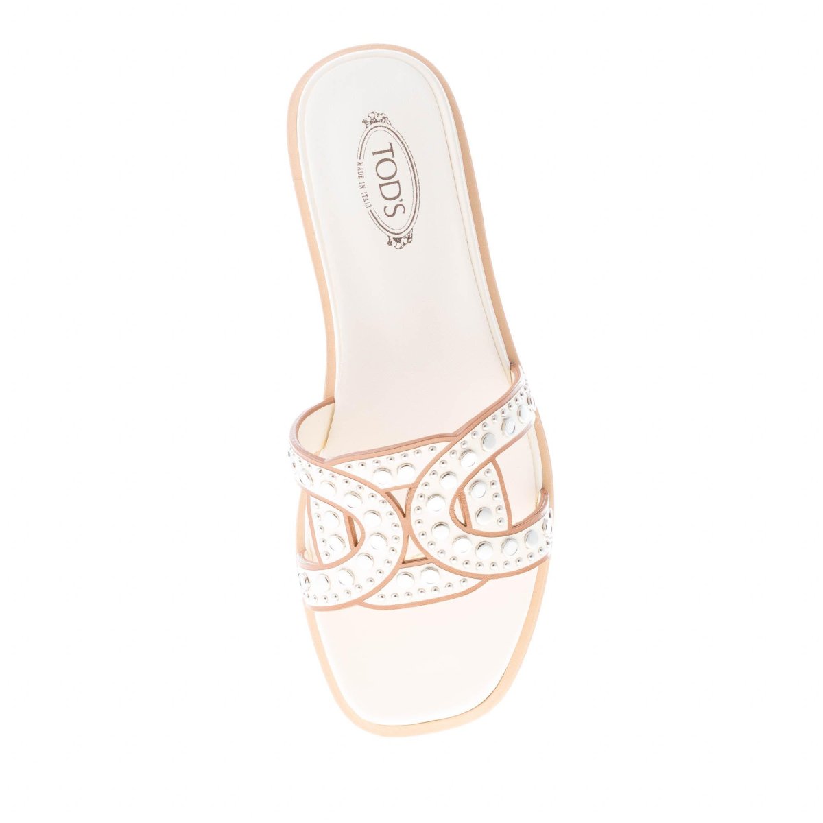 TOD’S donna sandalo ciabatta in pelle CREMA con fascia intrecciata a catena e borchie. Suola cuoio
