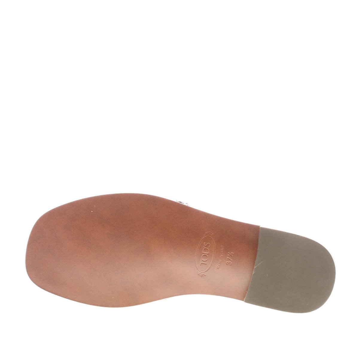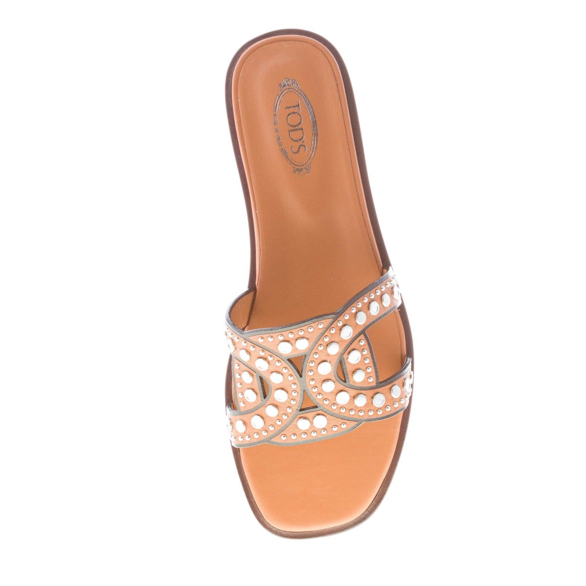 TOD’S donna sandalo ciabatta in pelle CUOIO con fascia intrecciata a catena e borchie. Suola cuoio