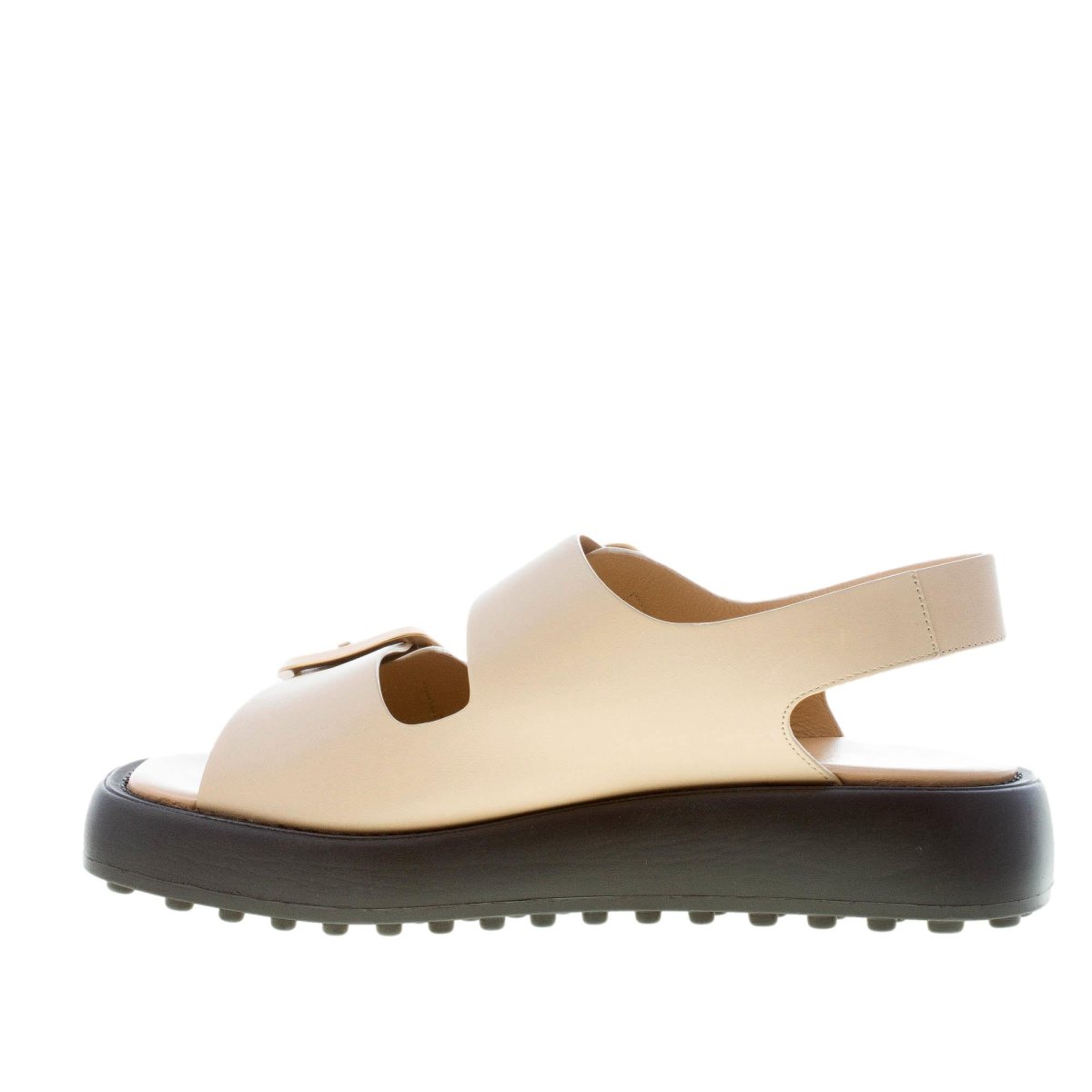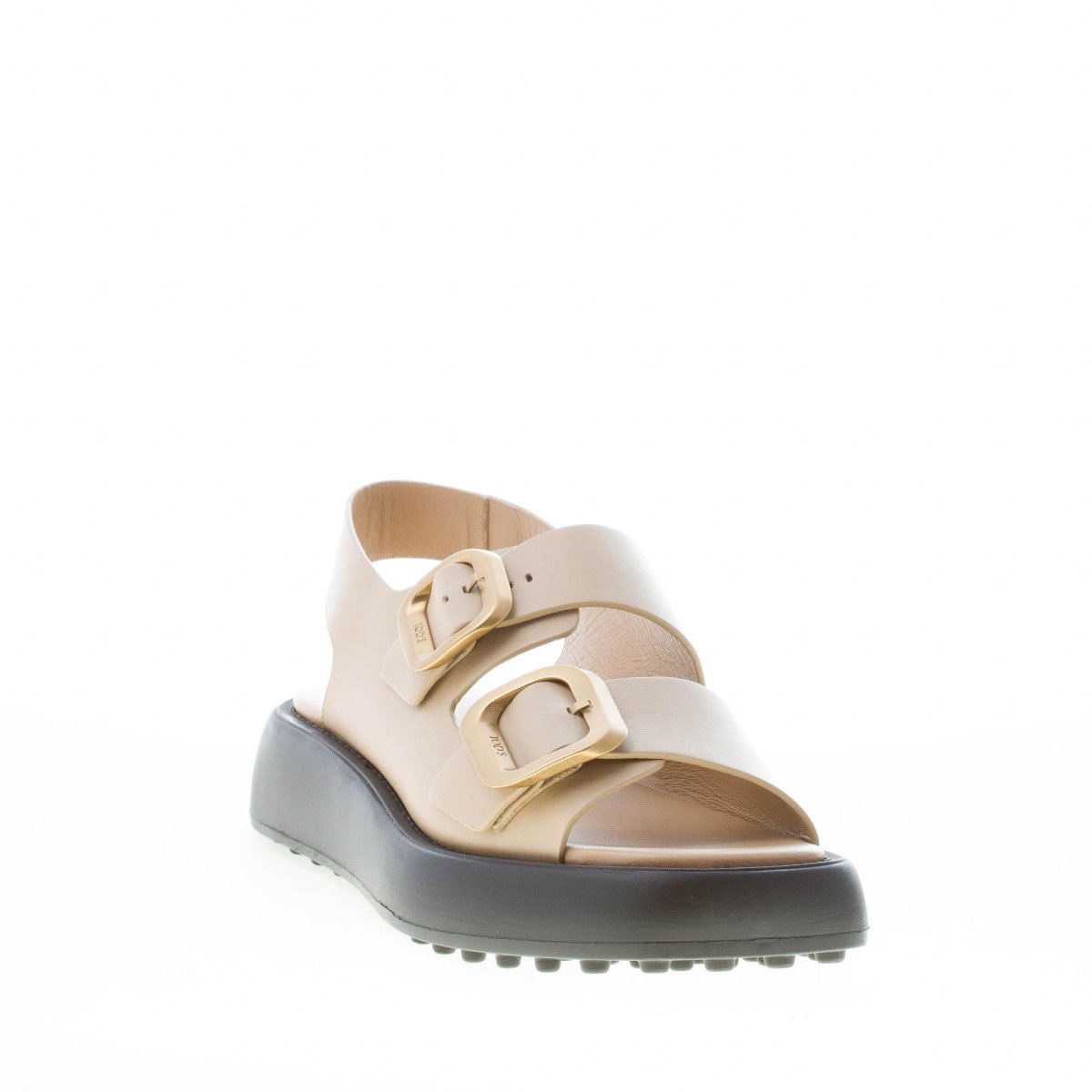 TOD’S donna sandalo in pelle BEIGE con doppia fibbia in metallo oro. Suola gomma