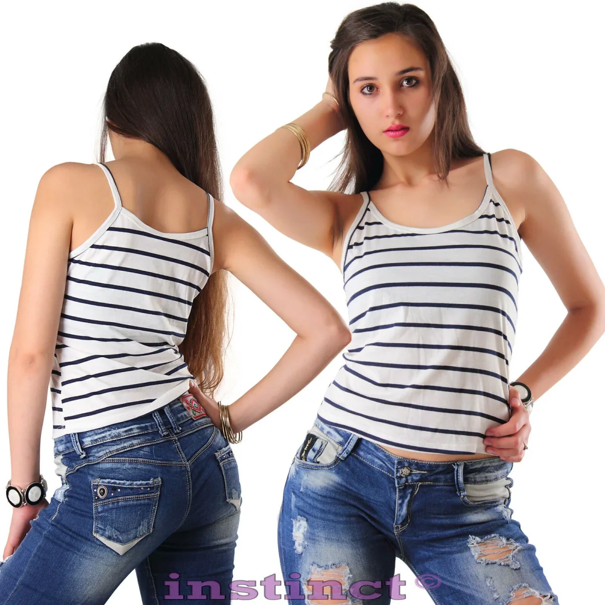 TOP maglia donna sexy canotta canottiera a righe sottogiacca spalline IS5023