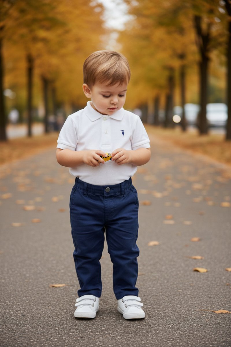 Pantalone โ Elastico in vita e finto bottone โ Tasche chino โ Vestibilitร : Normale โ Composizione: 100% cotone
