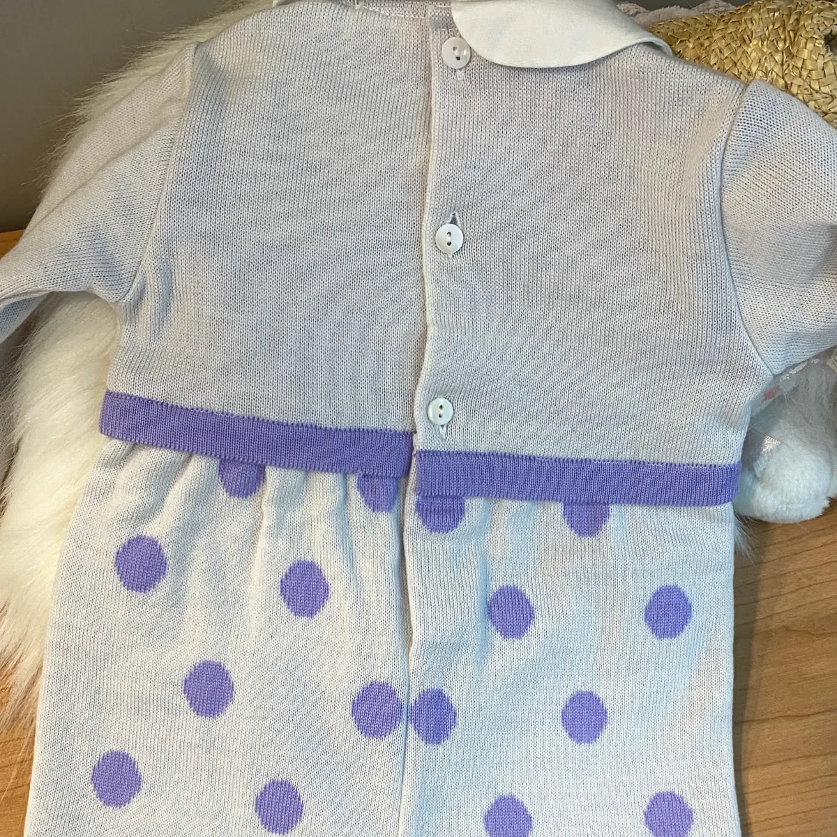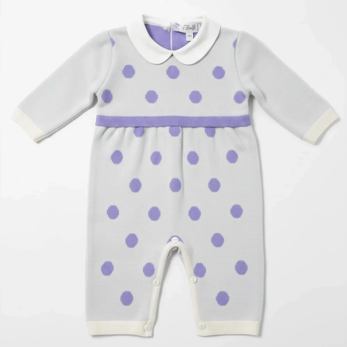 Tutina Intera Neonata Panna e Lilla: Raffinatezza in Maglia a Pois