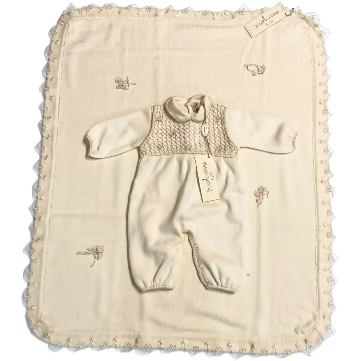 ๐ Idea Regalo Nascita Lusso: Set Tutina e Copertina in Lana Avorio Petit