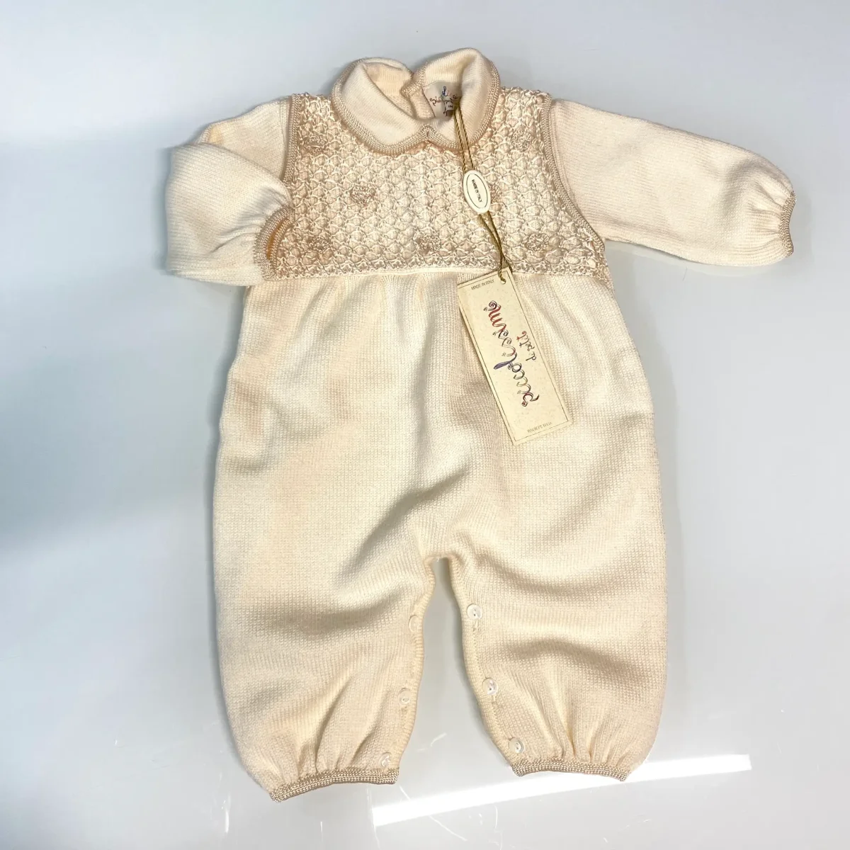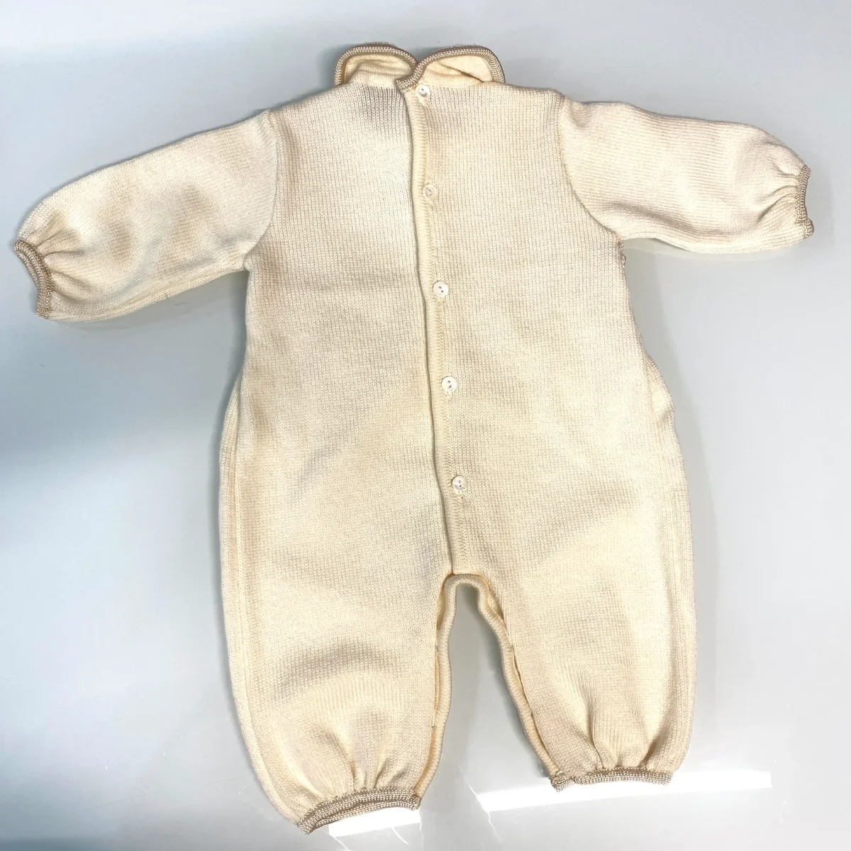 Tutina Neonato 100% Lana Avorio con Ricamo in Maglia โ Petit Outlet (0-3 Mesi)