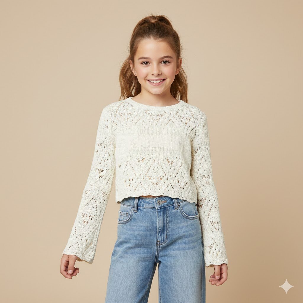 Maglia Cropped in Tricot Traforato Leggerezza e stile bohémien. Questa maglia girocollo cattura l’essenza della stagione con la sua lavorazione a punto pizzo delicata e sofisticata. Caratterizzata da un design cropped moderno, è il capo ideale per creare giochi di sovrapposizioni o per aggiungere una texture preziosa ai look quotidiani. Caratteristiche Principali Lavorazione: Raffinato motivo tricot traforato con disegni geometrici e floreali che creano un elegante effetto “vedo-non-vedo”. Dettaglio Logo: Presenta l’intarsio del logo TWINSET tono su tono posizionato centralmente, per un tocco di brand identity discreto ma iconico. Taglio: Silhouette cropped (corta in vita) con vestibilità morbida, perfetta…
