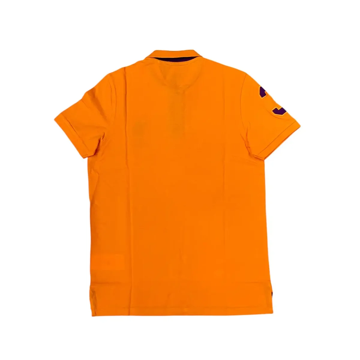 Polo istituzionale a maniche corte da uomo in cotone arancione con colletto e giromanica a coste. Classica chiusura del colletto a due bottoni. L’iconico logo Double Horseman lato cuore completa il look e identifica il capo. Rifiniture in viola sulla manica destra. Rifiniture all’interno e sotto il colletto in viola. Un capo iconico e sempre attuale.