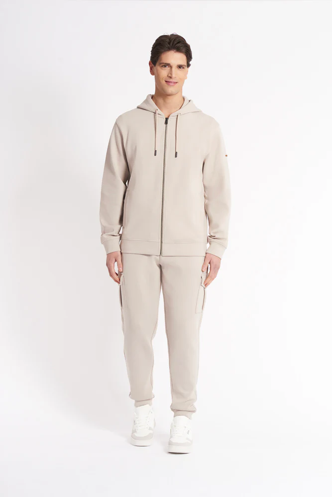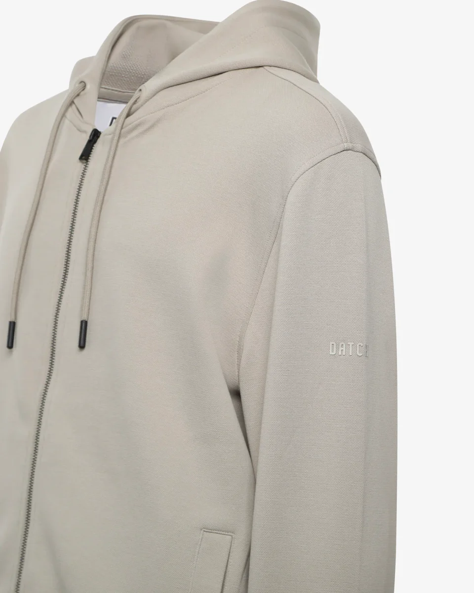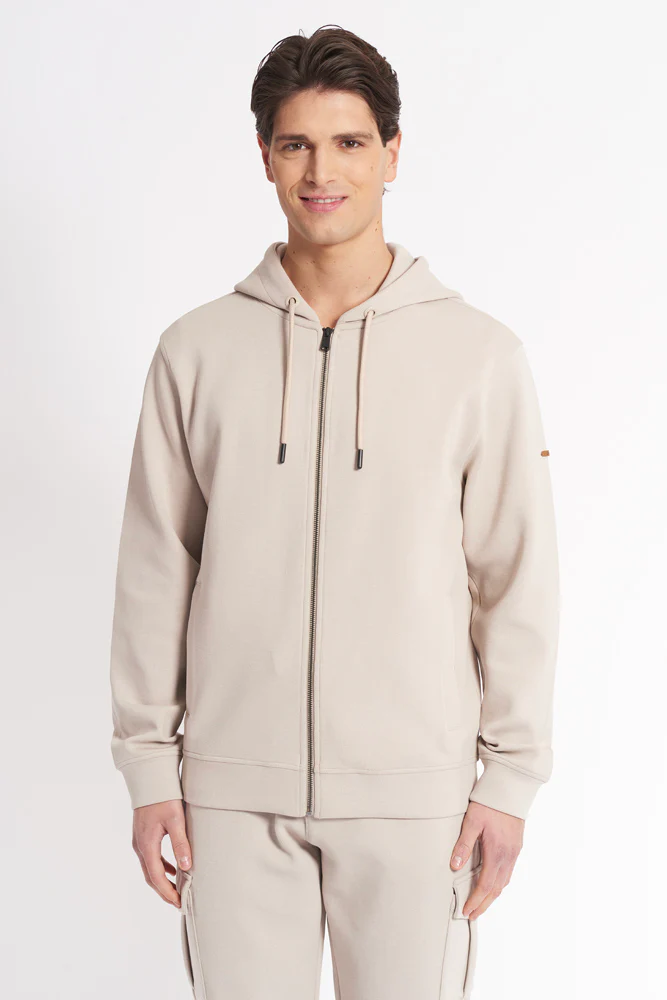 Dal design pratico e moderno, questa felpa con cappuccio รจ dotata di zip frontale e texture effetto piquet che dona carattere e stile. Perfetta per outfit casual e sportivi, garantisce comfort e libertร  di movimento in ogni occasione.