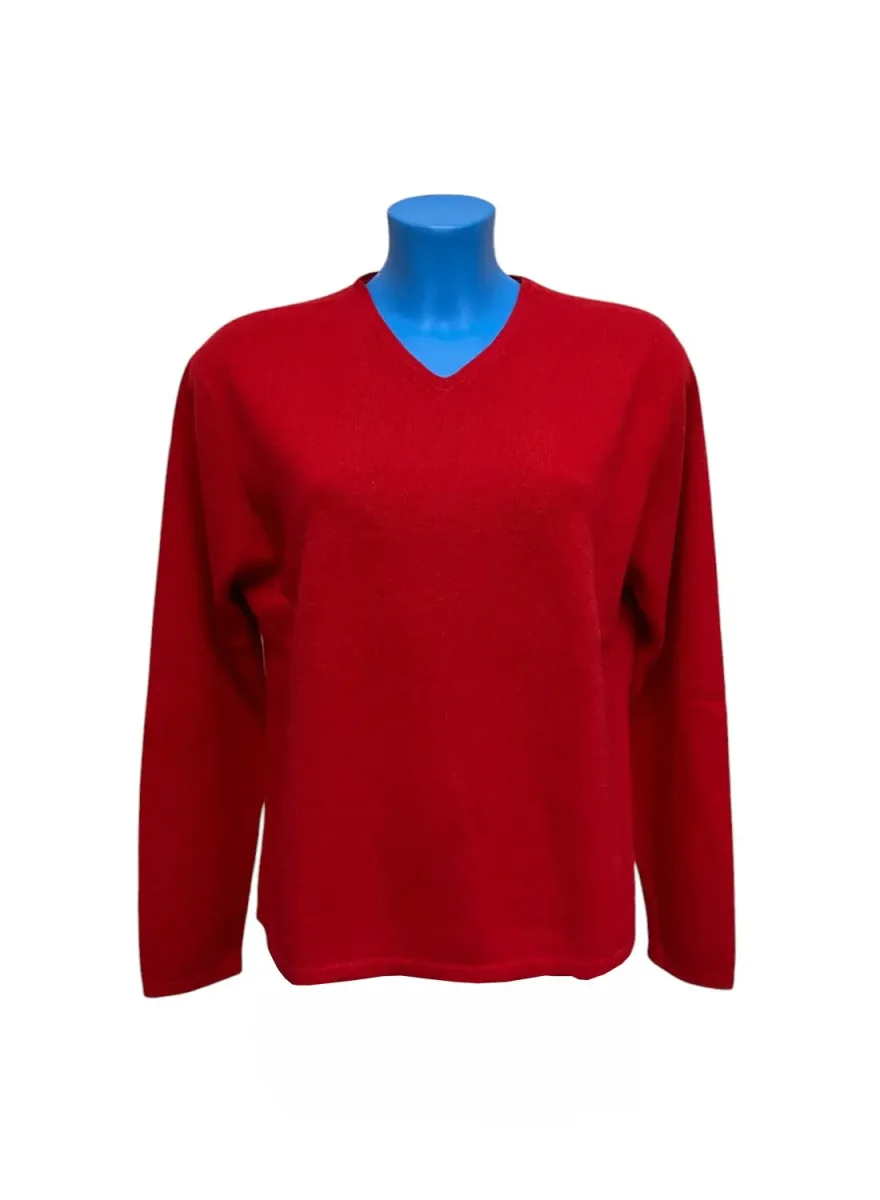Valerie Stevens – L – Maglione con scollo a V in cashmere rosso donna