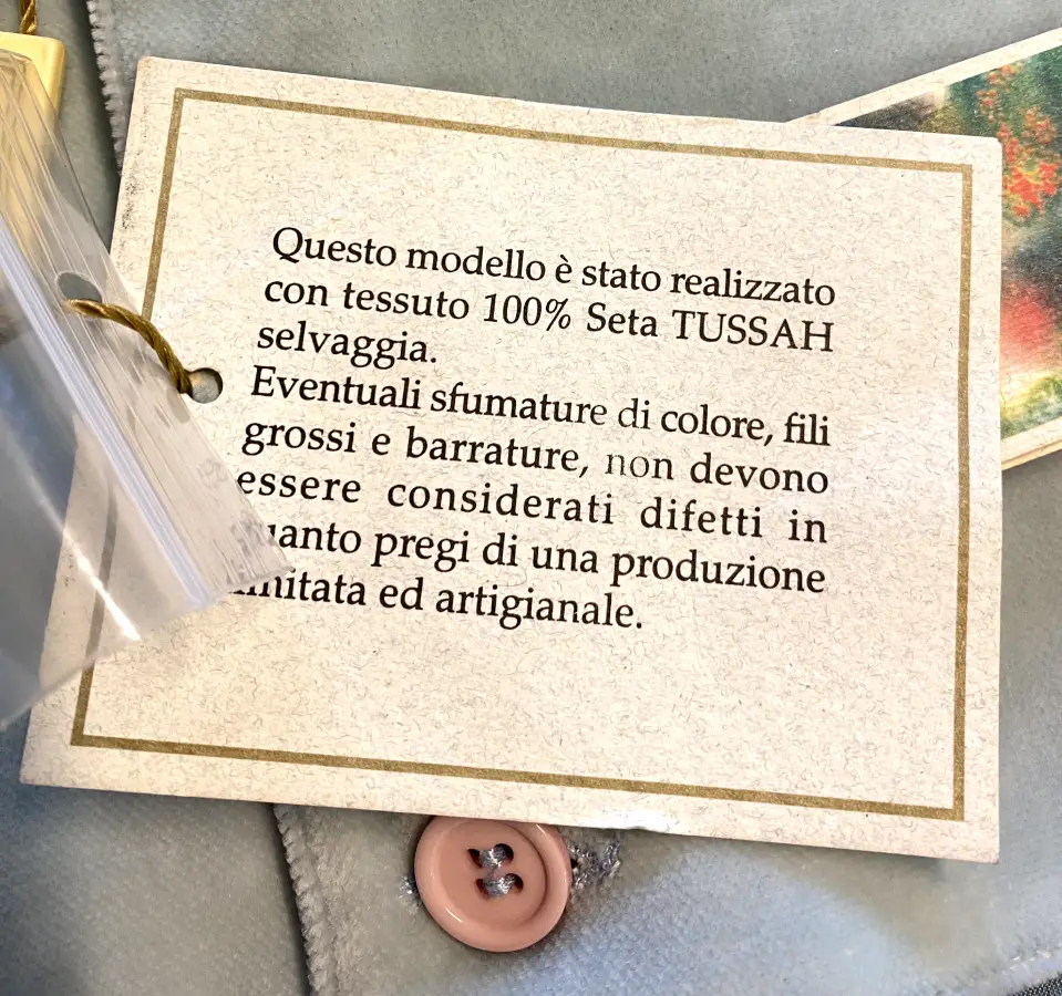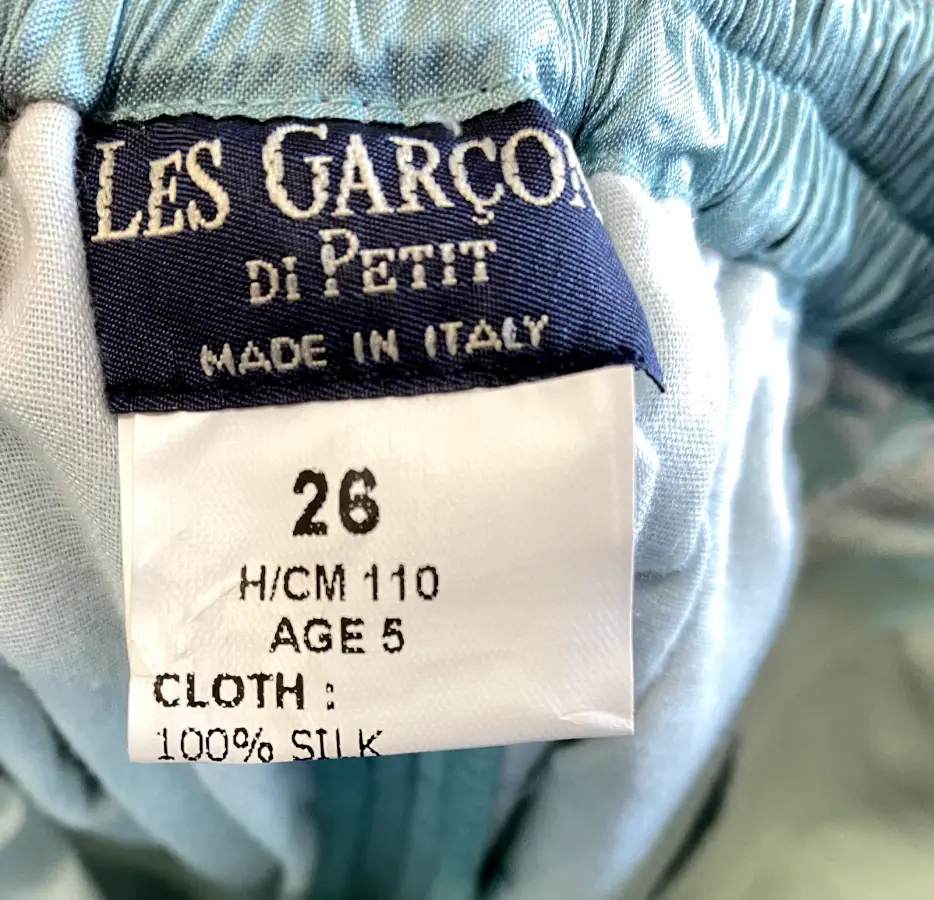 - Pantaloni in seta tussah: Leggeri, morbidi e raffinati, completano lโoutfit con una vestibilitร impeccabile e grande libertร di movimento. I pantaloni sono rivestiti internamente per proteggere il bambino dal freddo (vedi foto)