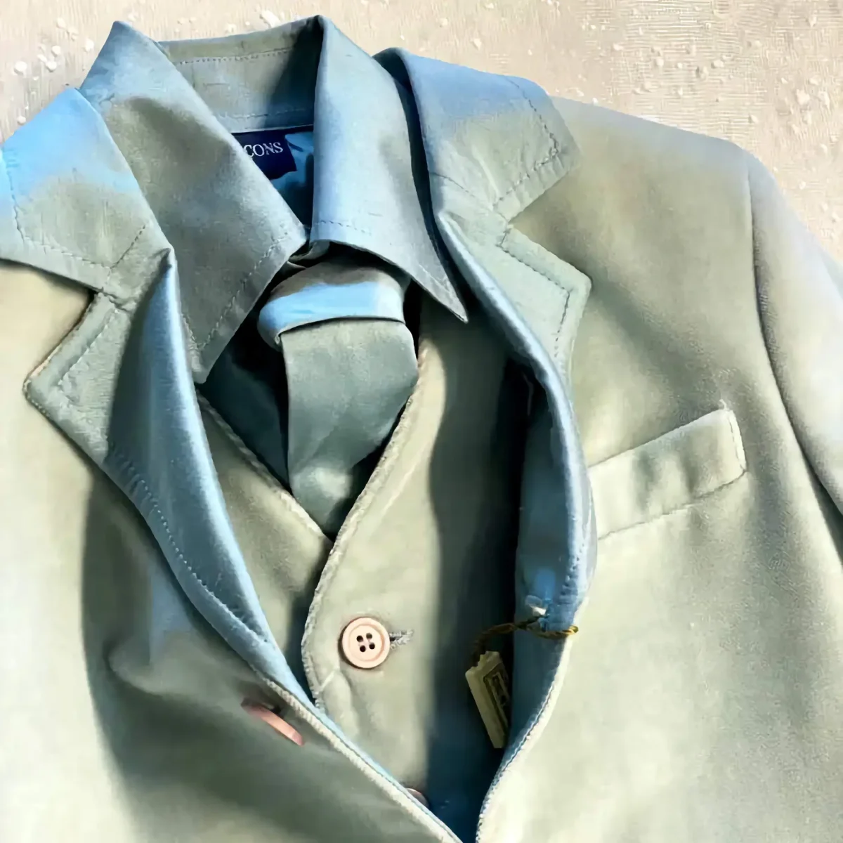 - Giacca e Gilet in velluto liscio: Dal colore turchese intenso, offrono un tocco di classe ineguagliabile.