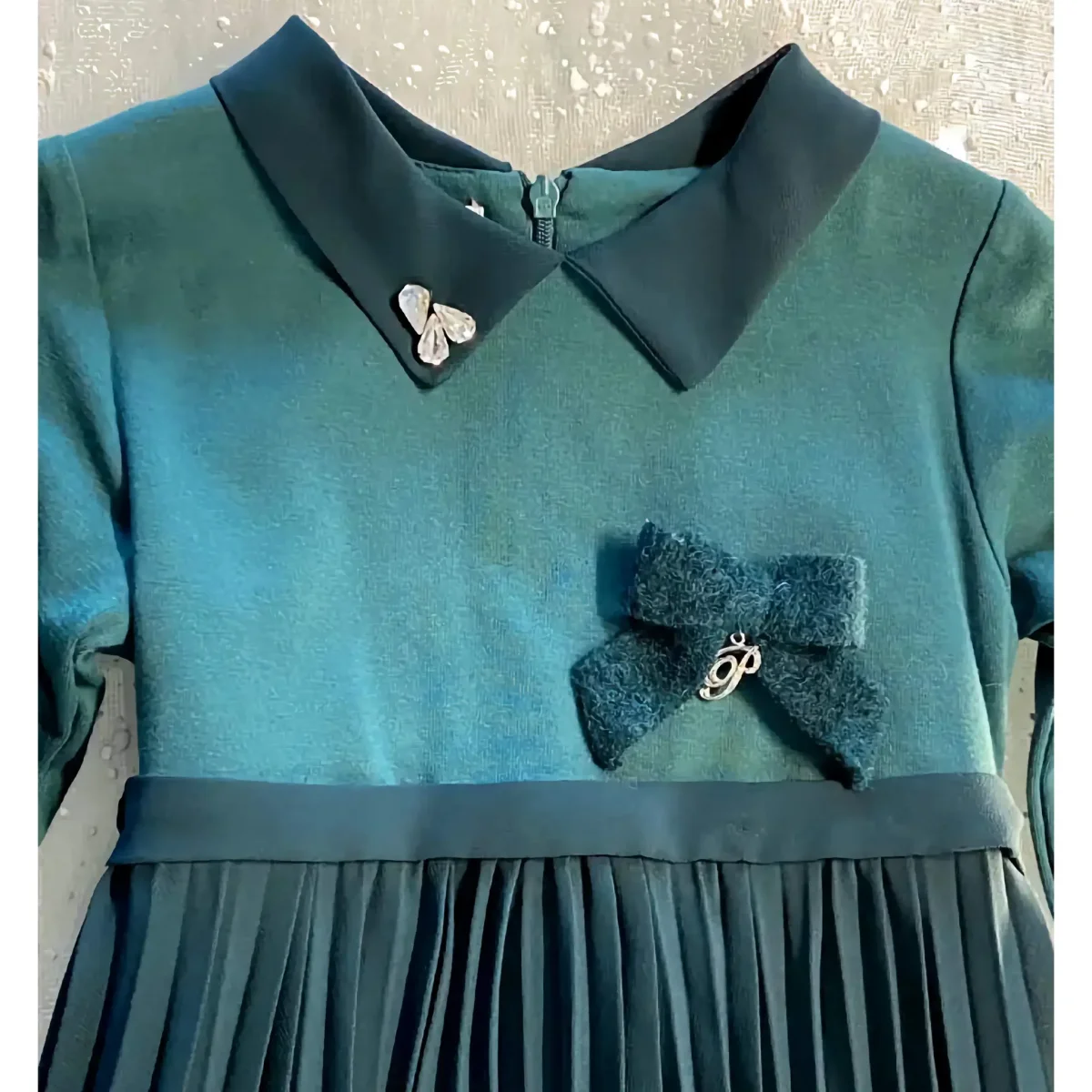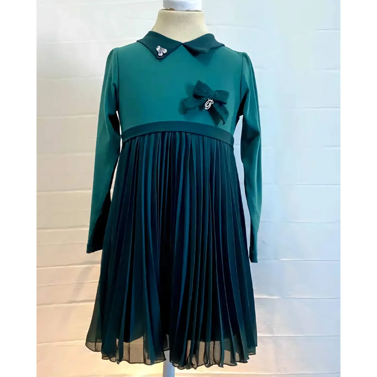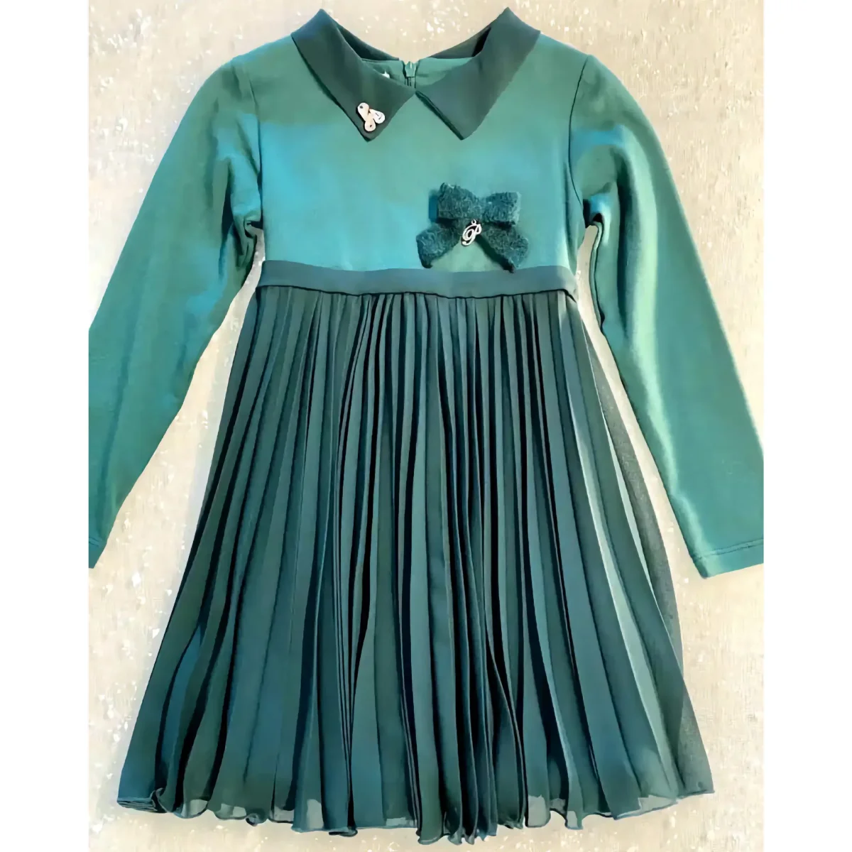 Vestito elegante plissettato di colore verde per bambina di 5 Anni