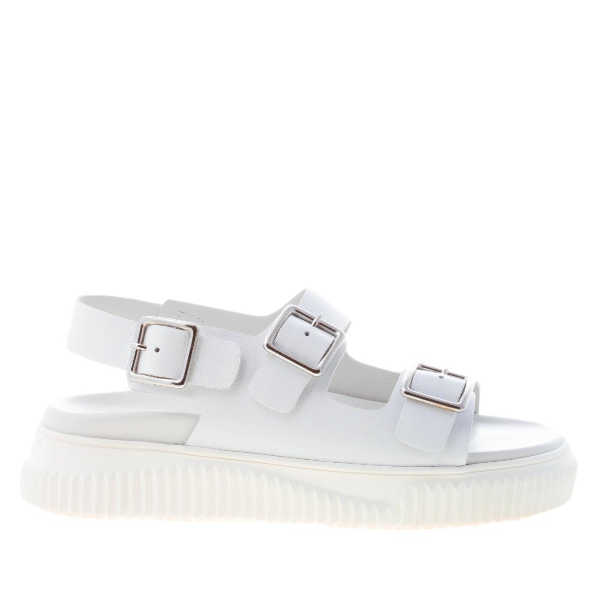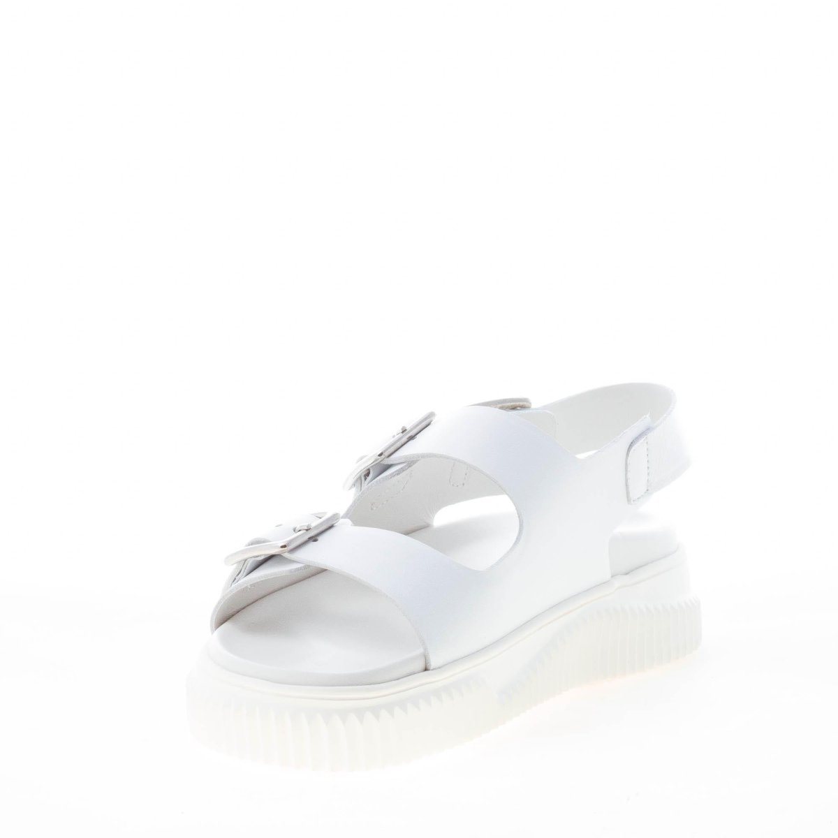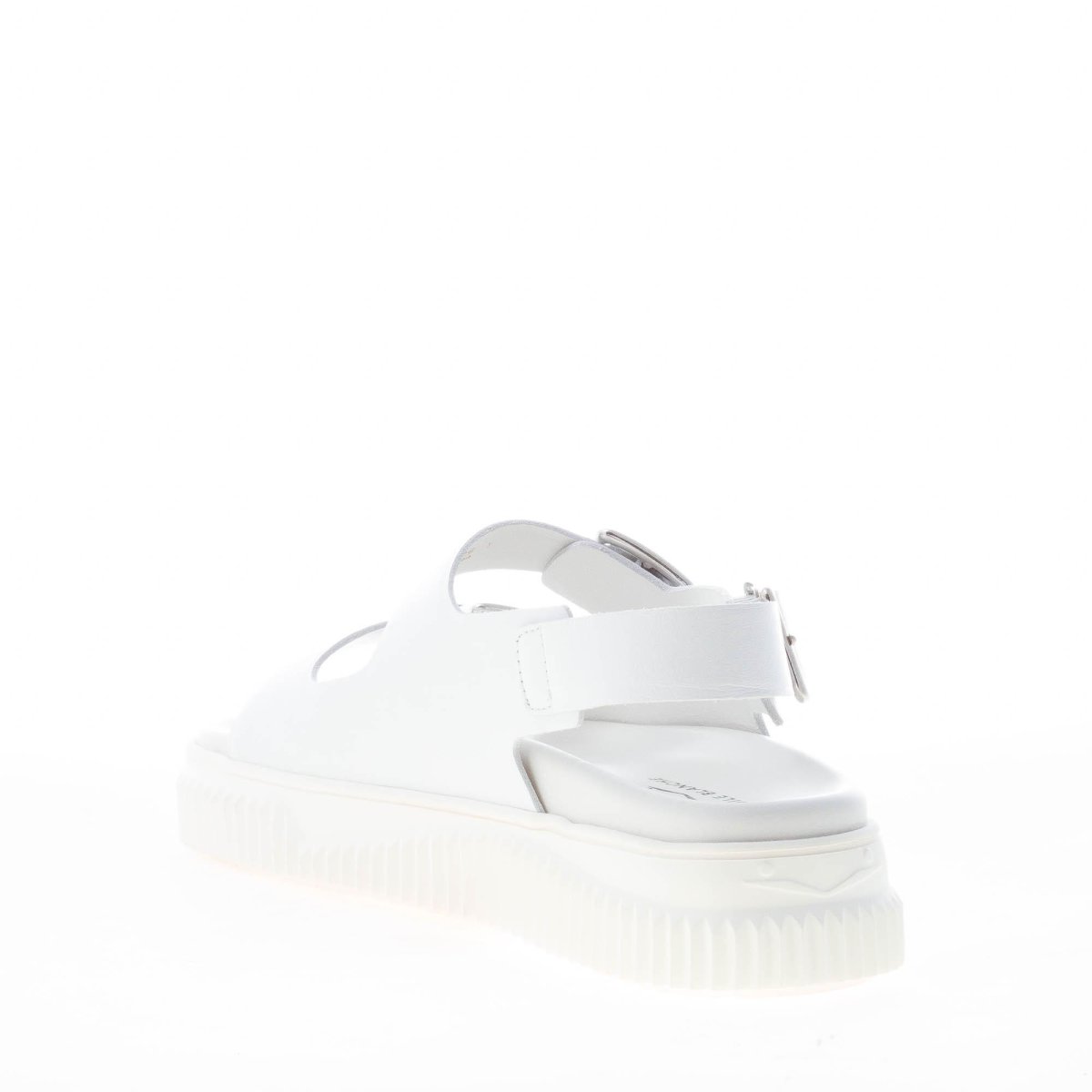 White leather sporty sandal Lisa 19 with a buckled multi-strap upper and a slingback strap fastening with adjustable buckle. White rubber sole with knurled profile
