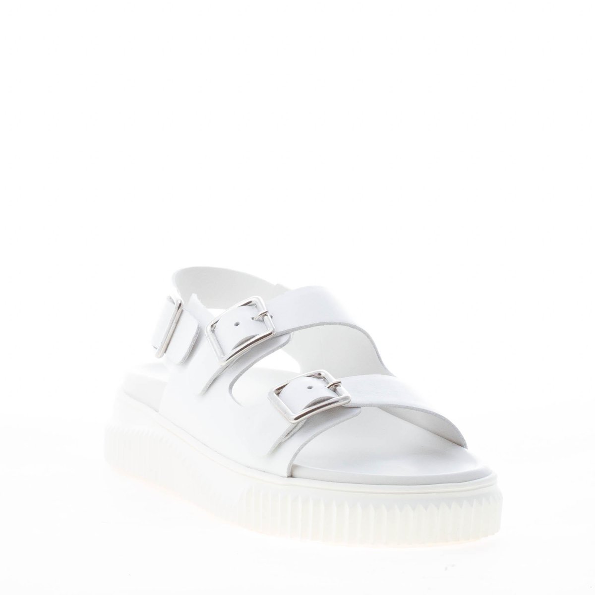 VOILE BLANCHE donna sandalo Lisa 19 in pelle BIANCO con tripla fibbia metallica. Tacco 4 cm