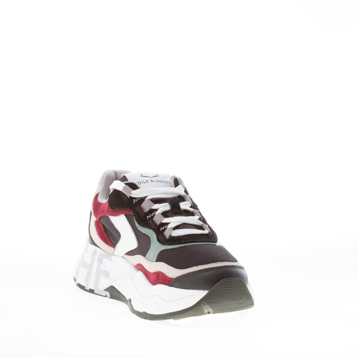 VOILE BLANCHE donna sneaker Club107 in pelle e tessuto tecnico NERO più multicolore