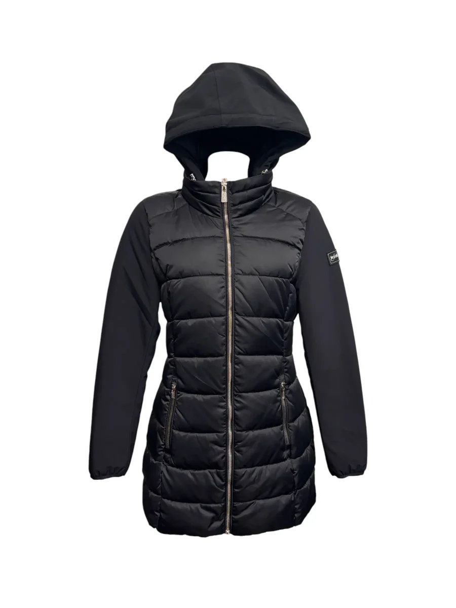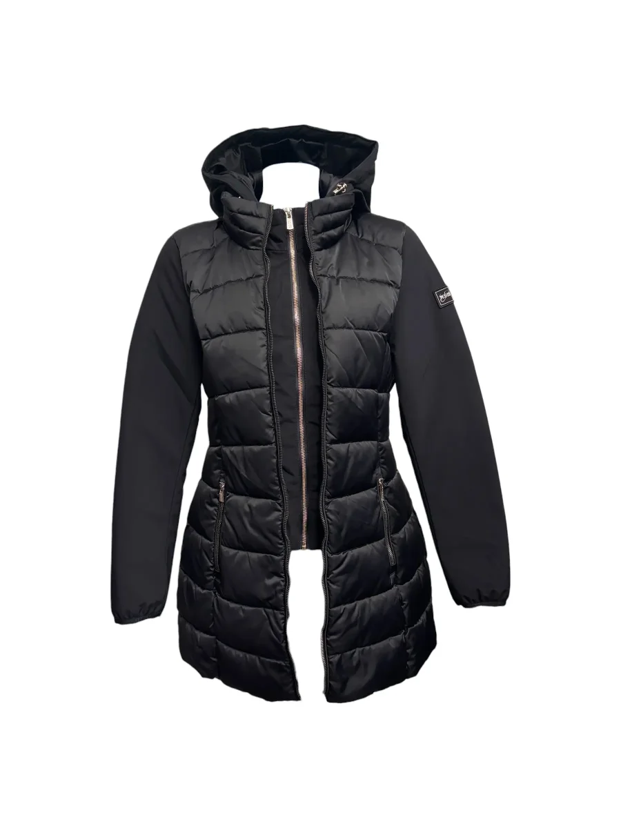 Giubbotto nero lungo da donna con cappuccio. Realizzato con corpo trapuntato e maniche in softshell, offre unโeccellente protezione dal freddo mantenendo una linea moderna e femminile. Munito di pettorina staccabile con cappuccio con coulisse, tasche con zip e chiusura con zip a doppio cursore,ย che rendono questo piumino pratico e funzionale per lโuso quotidiano. Il design leggero ma caldo assicura comfort in ogni situazione. Perfetto per cittร , viaggi e attivitร outdoor.